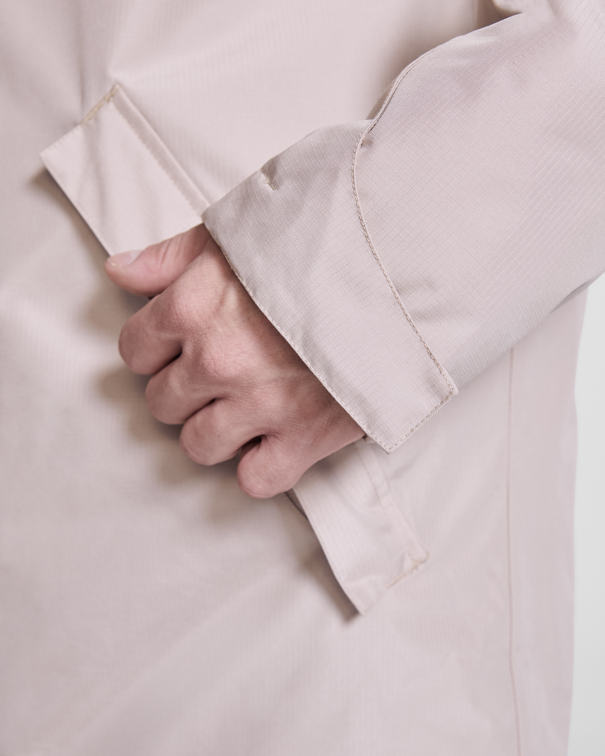 Parka rembourrée avec capuche amovible et réglages élastiques. Matériau étanche à l’eau. Fermeture à glissière avant assortie recouverte d’un large rabat du même tissu. Poignets avec réglage velcro. Poches latérales avec fermetures à glissière assorties et recouvertes d’une patte de boutonnage en tissu assortie. Poche intérieure de poitrine gauche. Accès intérieur pour retraitement. Certifié GRS.