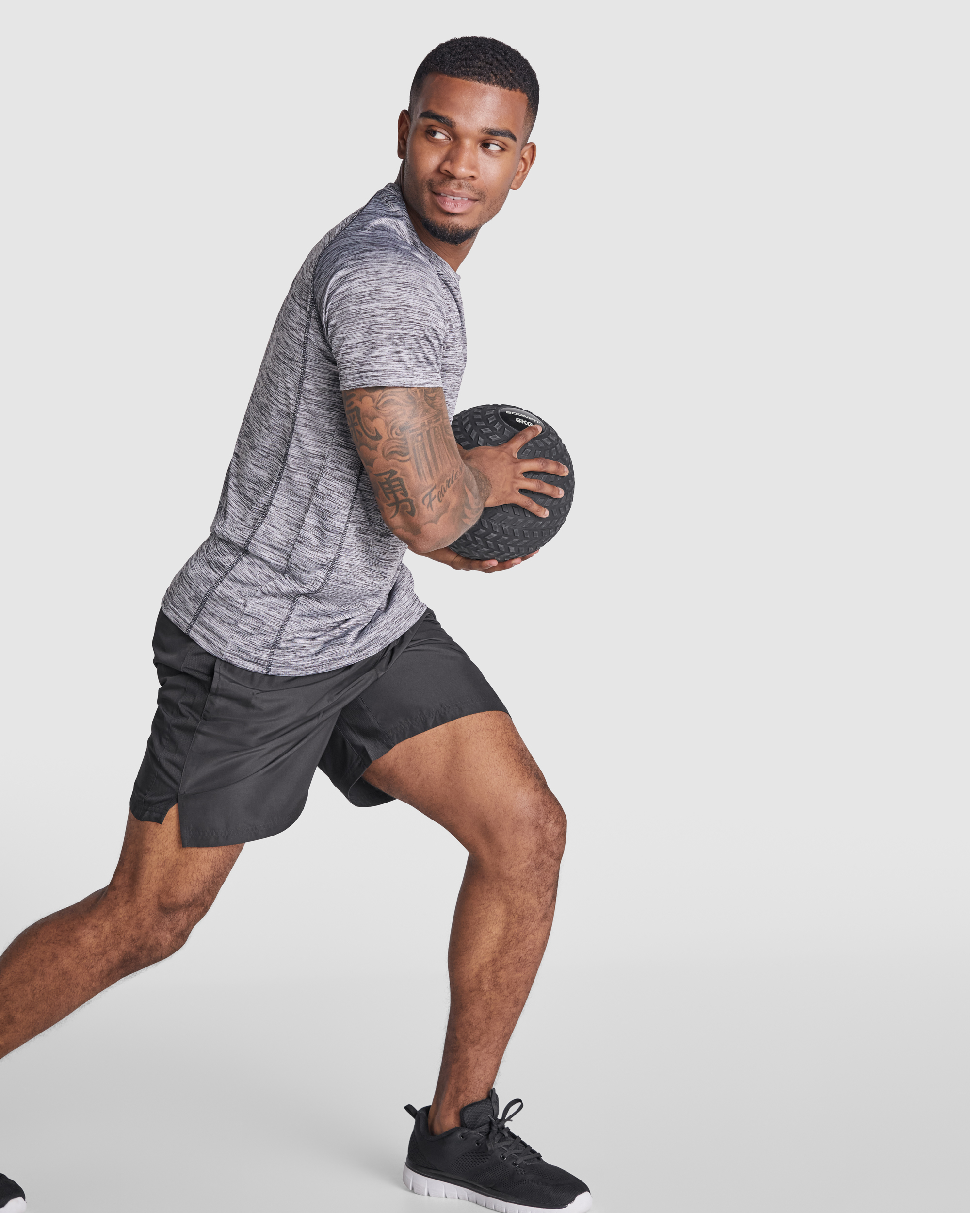 T-shirt technique respirant à manches ranglan. Panneaux latéraux avec coutures anti-friction. Col rond ton sur ton et biais à l’encolure.