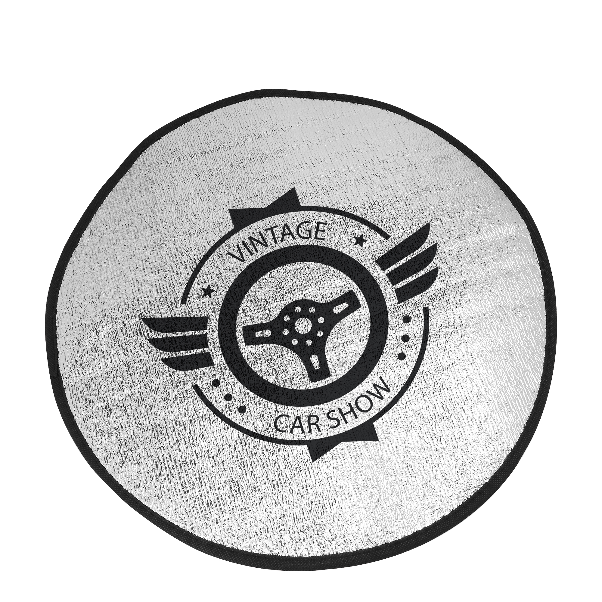 Couvre-volant ronds avec couche avant en aluminium et dos en mousse blanche. Bordure en noir.