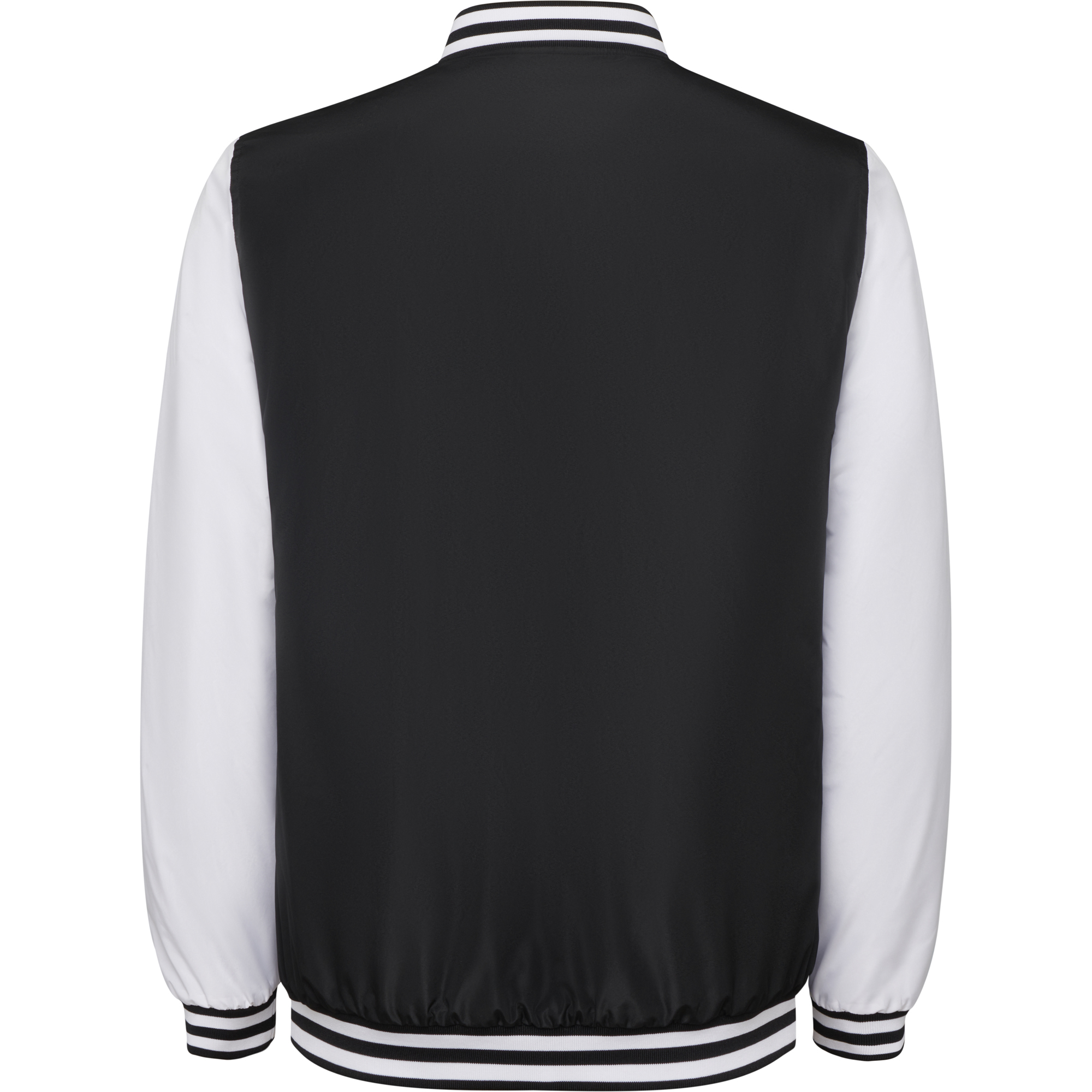 Veste unisexe en bicolore. Légèrement rembourrée. Poches latérales avec fermeture à glissière et bordure en tissu contrastant. Col, poignets et ourlet côtelés 1×1 avec lignes contrastées associées au corps. Boutons-pression avec finition en plastique contrastée. Accès à l’arrière pour retraitement.