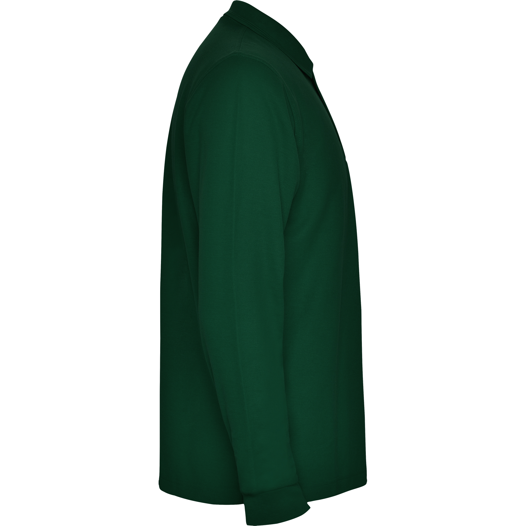 Polo à manches longues. Point piqué. Col et poignets tissés 1×1. Patte de boutonnage à 3 boutons. Encolure bordée de tissu assorti. Fentes latérales à l’ourlet. Poche, en option.