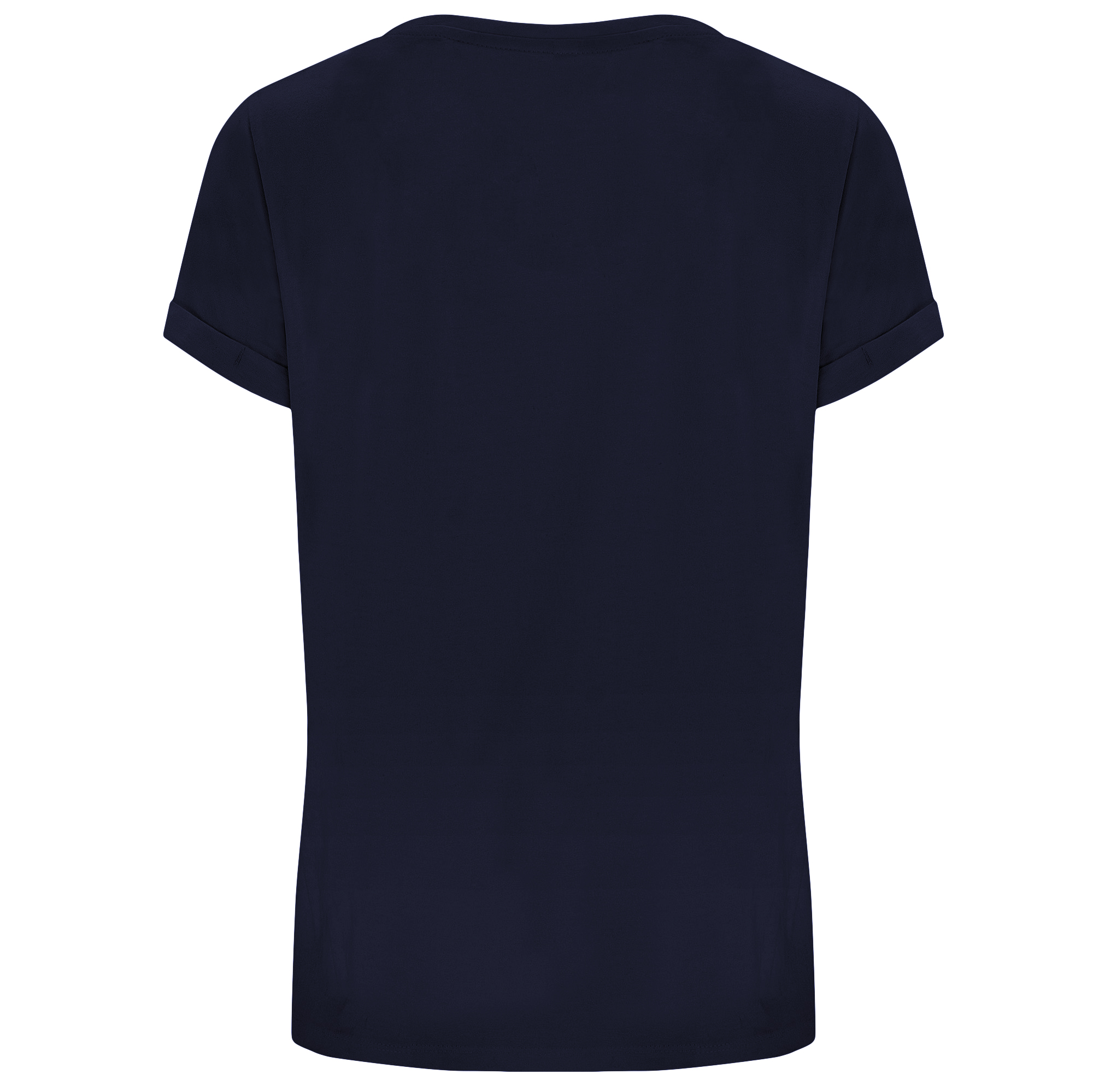 T-shirt à manches courtes légèrement fuselé à la taille. Encolure ronde en tissu assorti. Encolure bordée de tissu assorti. Surpiqûres renforcées sur les ourlets.