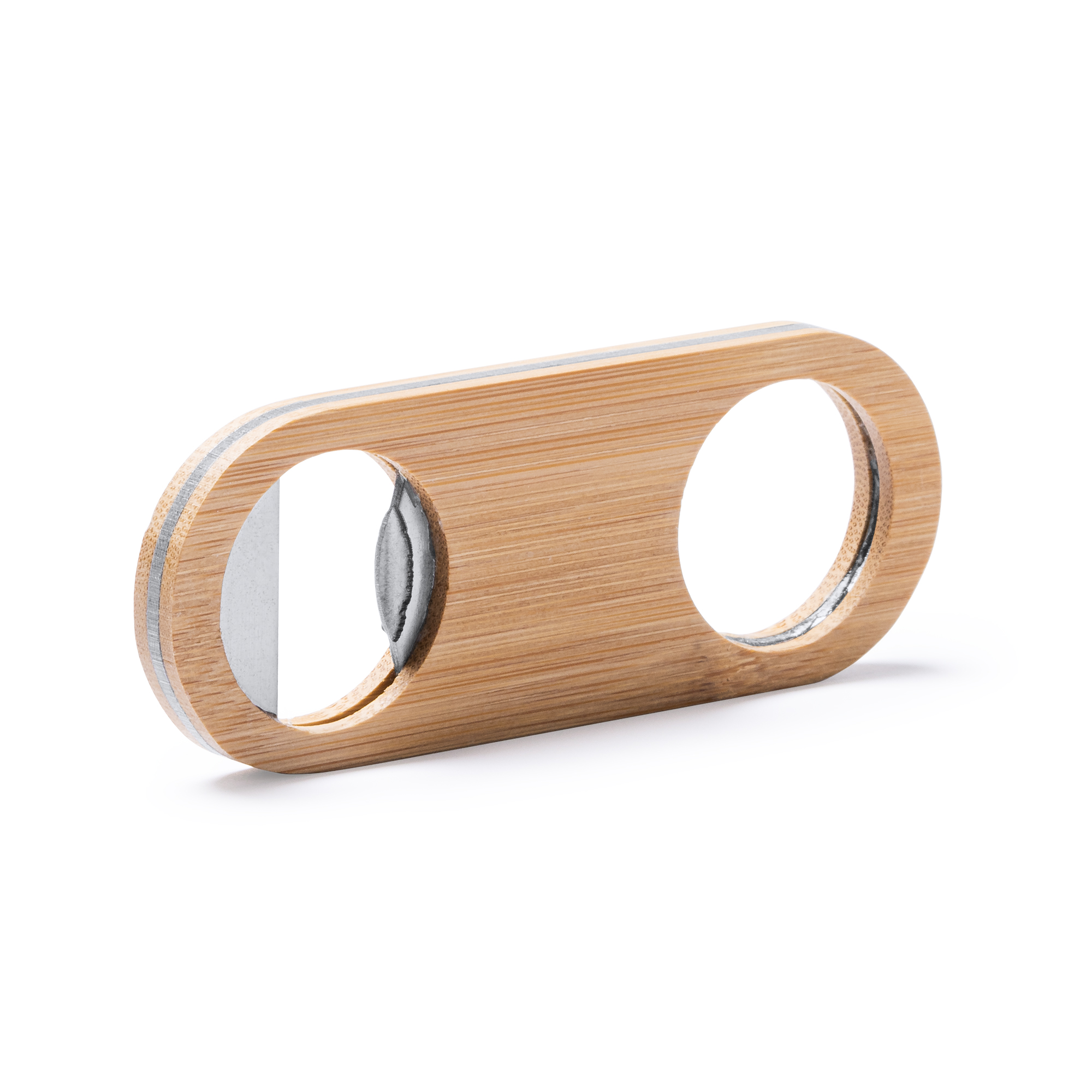 Ouvre- bouteille compacte en bambou avec intérieur en acier inoxydable et matrice supérieure pour accrocher.