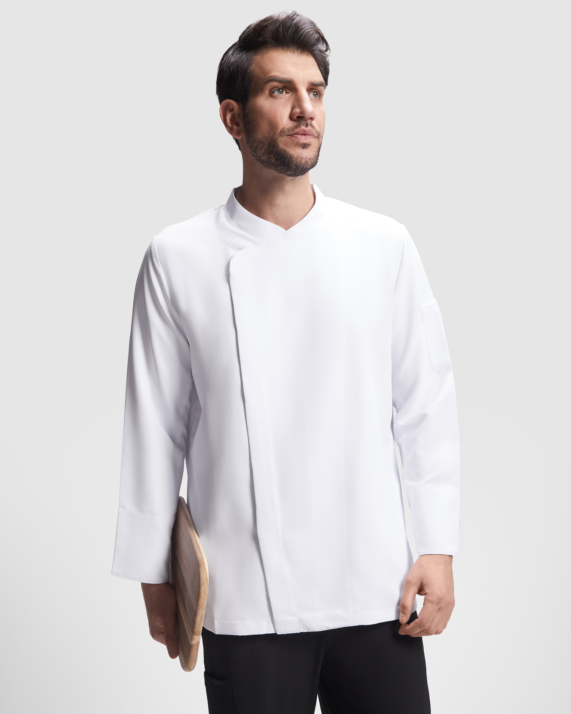 · Encolure croisée à droite avec boutons-pression dissimulés sur la patte de boutonnage avant.