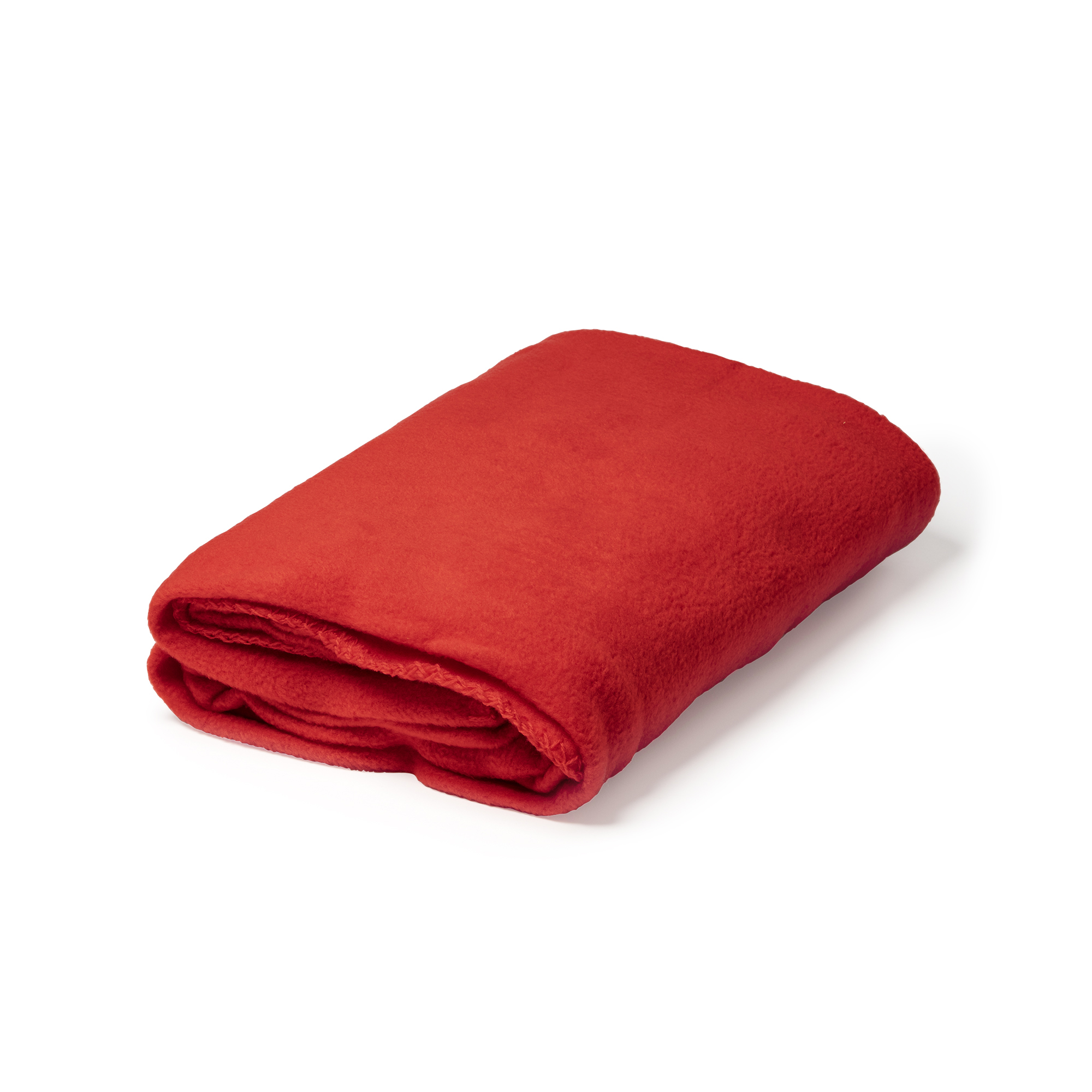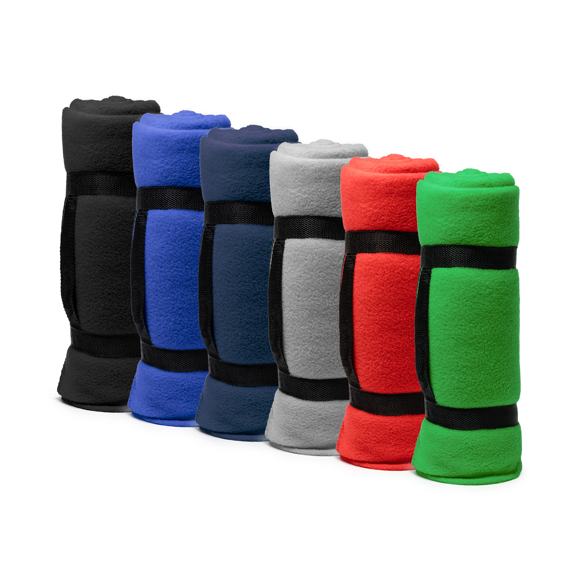 Couverture polaire avec traitement anti-boulochage. Comprend une poignée de transport avec fermeture velcro. 100% polyester de 200 g/m².