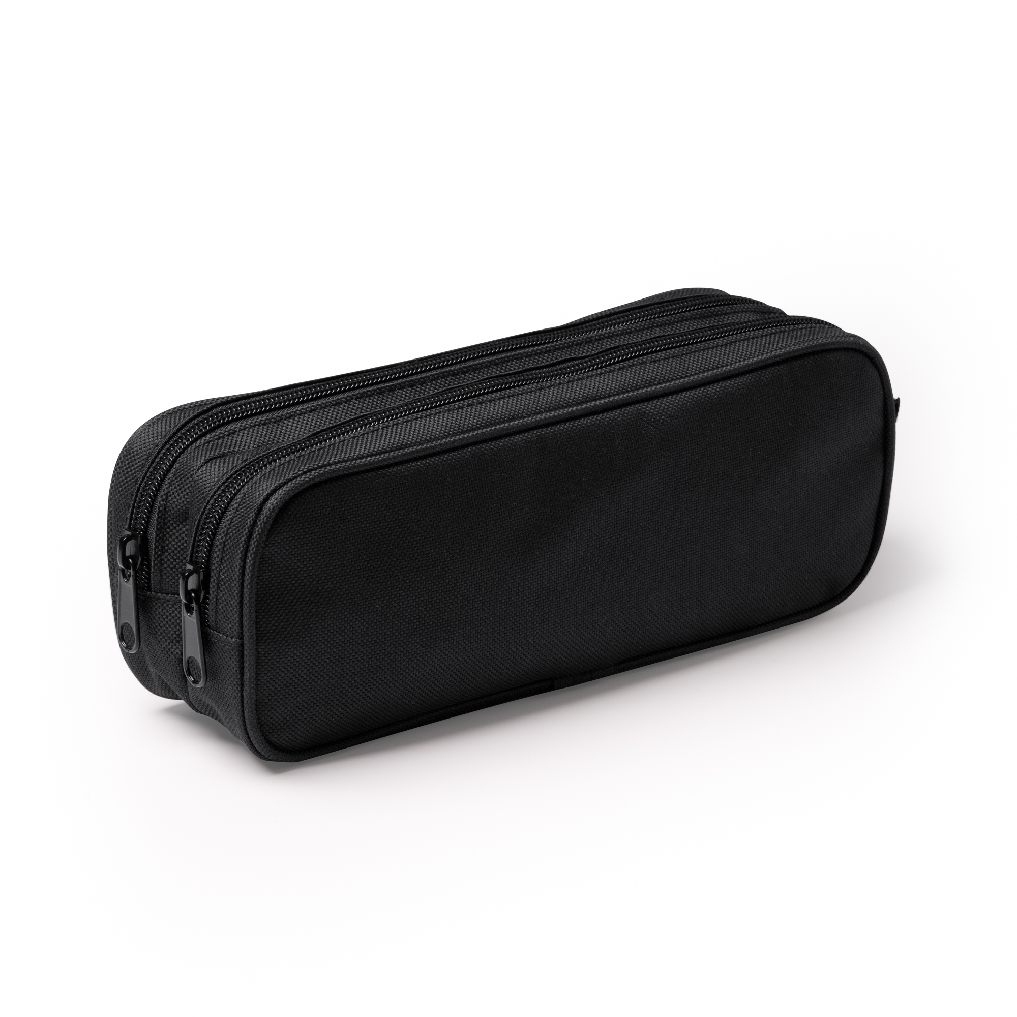 Trousse en polyester RPET 300D avec double compartiment et fermeture zippée.