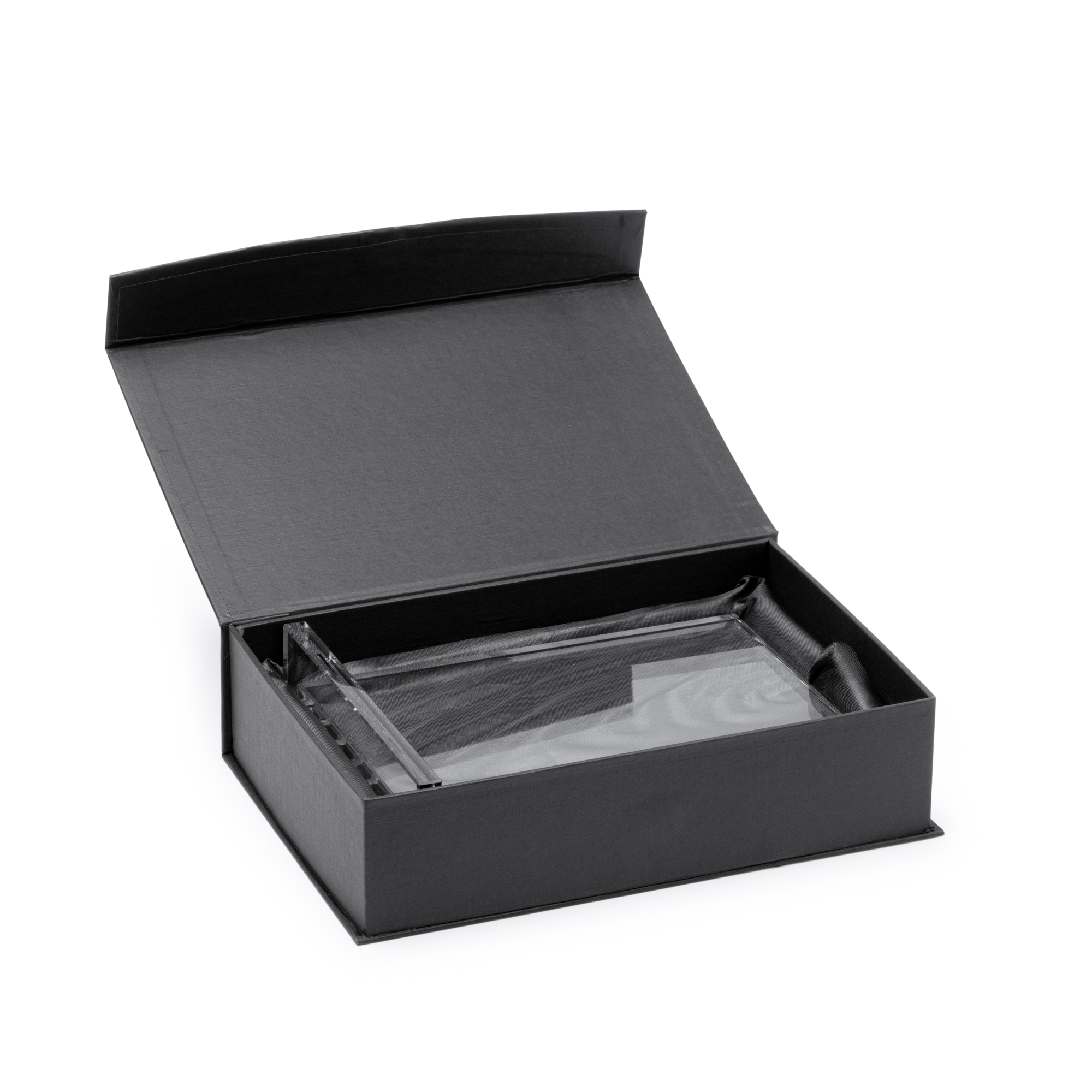 Trophée en verre de conception rectangulaire. Comprend un étui de présentation noir.