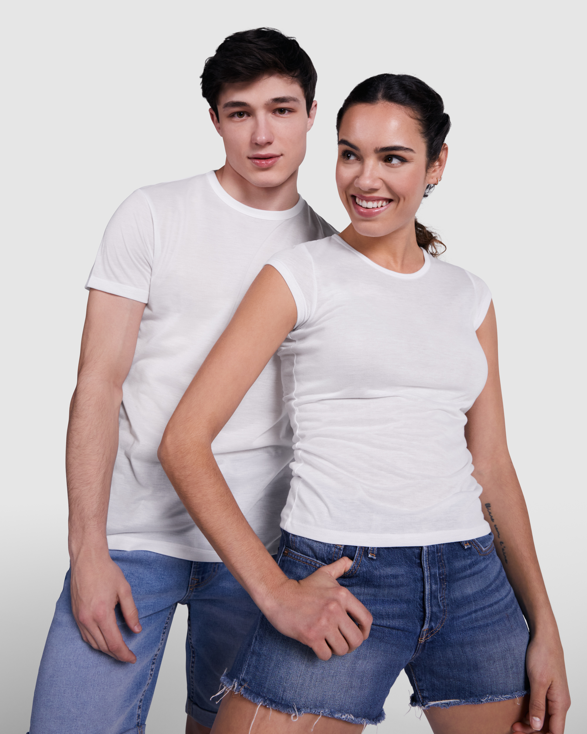 T-shirt ajusté à manches courtes en polyester avec toucher coton. Encolure ronde avec bordure en tissu assorti.