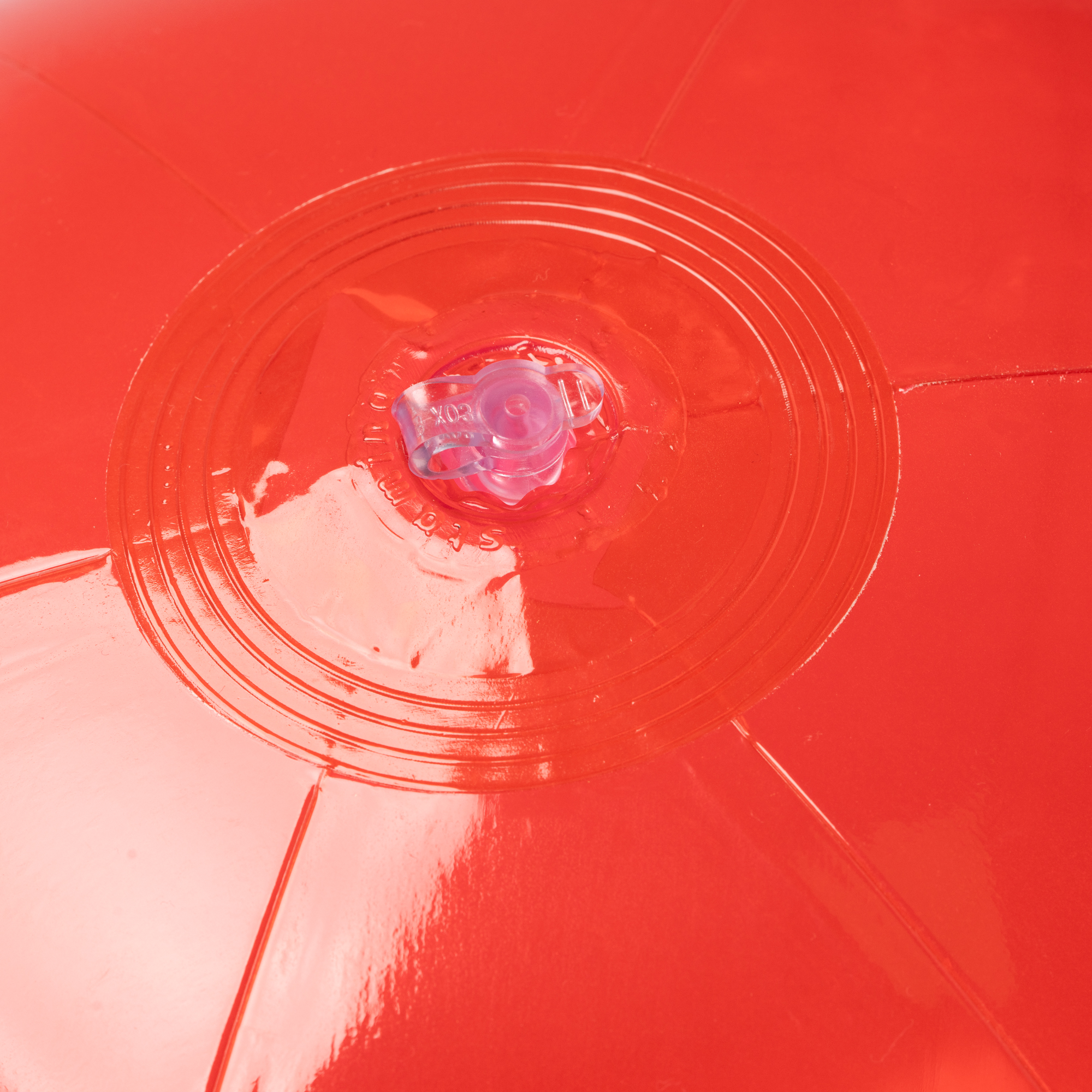 Ballon de plage en PVC translucide. Dégonflé : 37 cm. Gonflé : 28 cm.