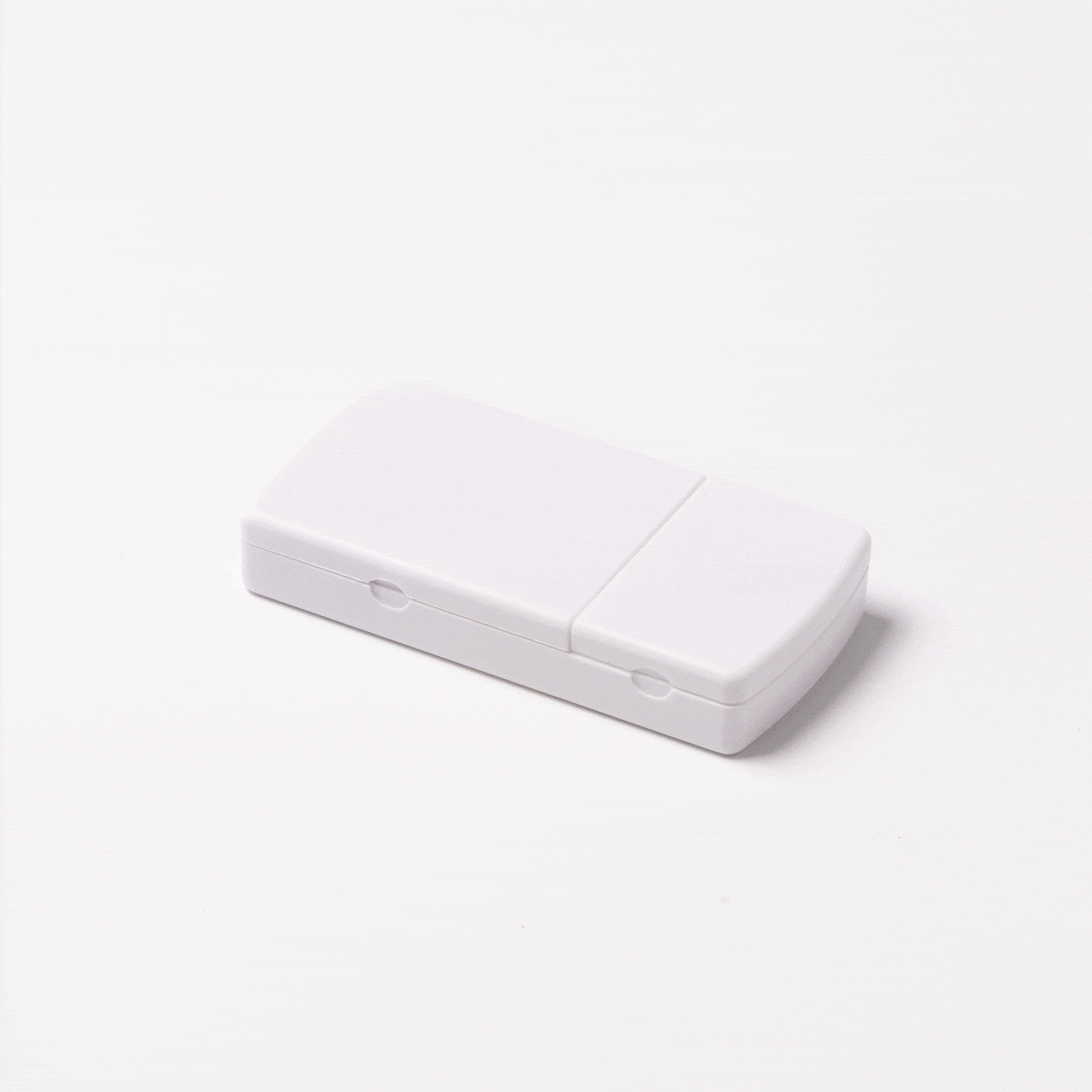 Pilulier avec deux sections: une avec deux boîtes bicolores et l’autre avec un cutter pour diviser les comprimés de plus grand volume.