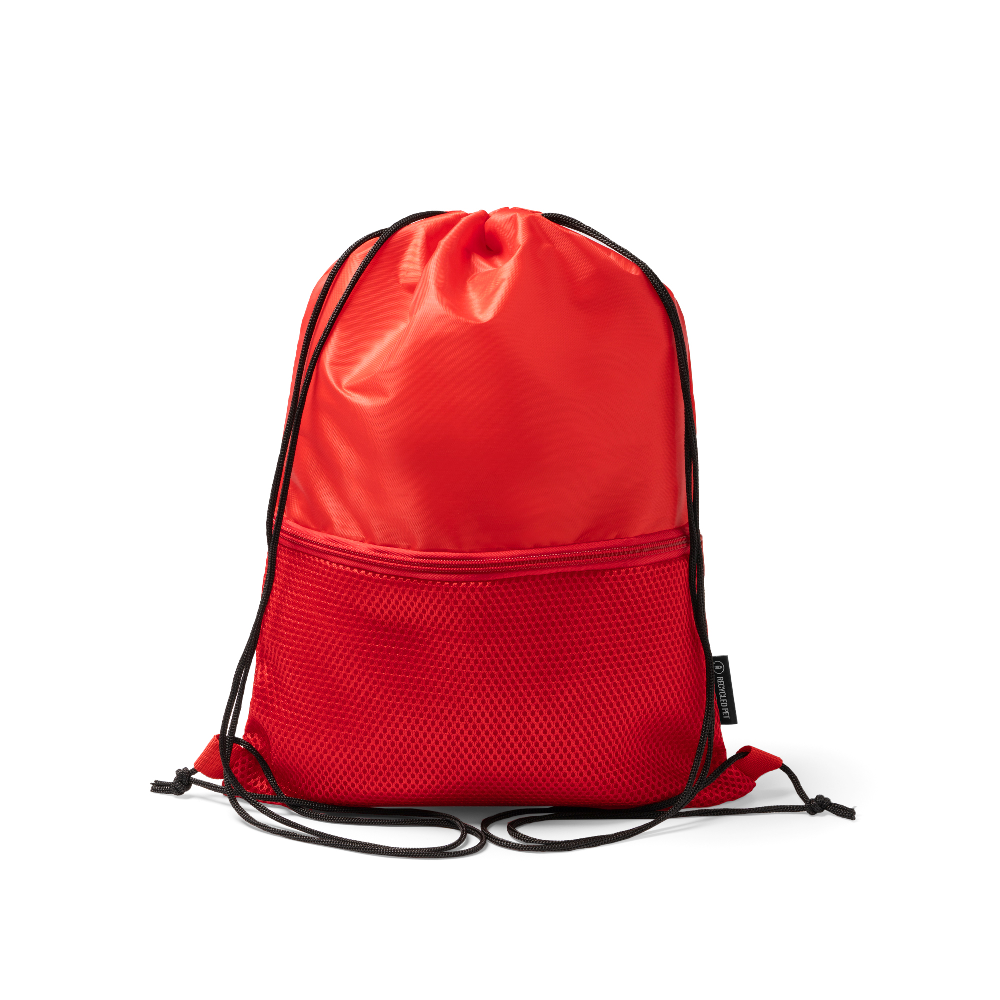 Sac à dos en corde en RPET 210D avec poche extérieure en tissu rembourré et fermeture à glissière.