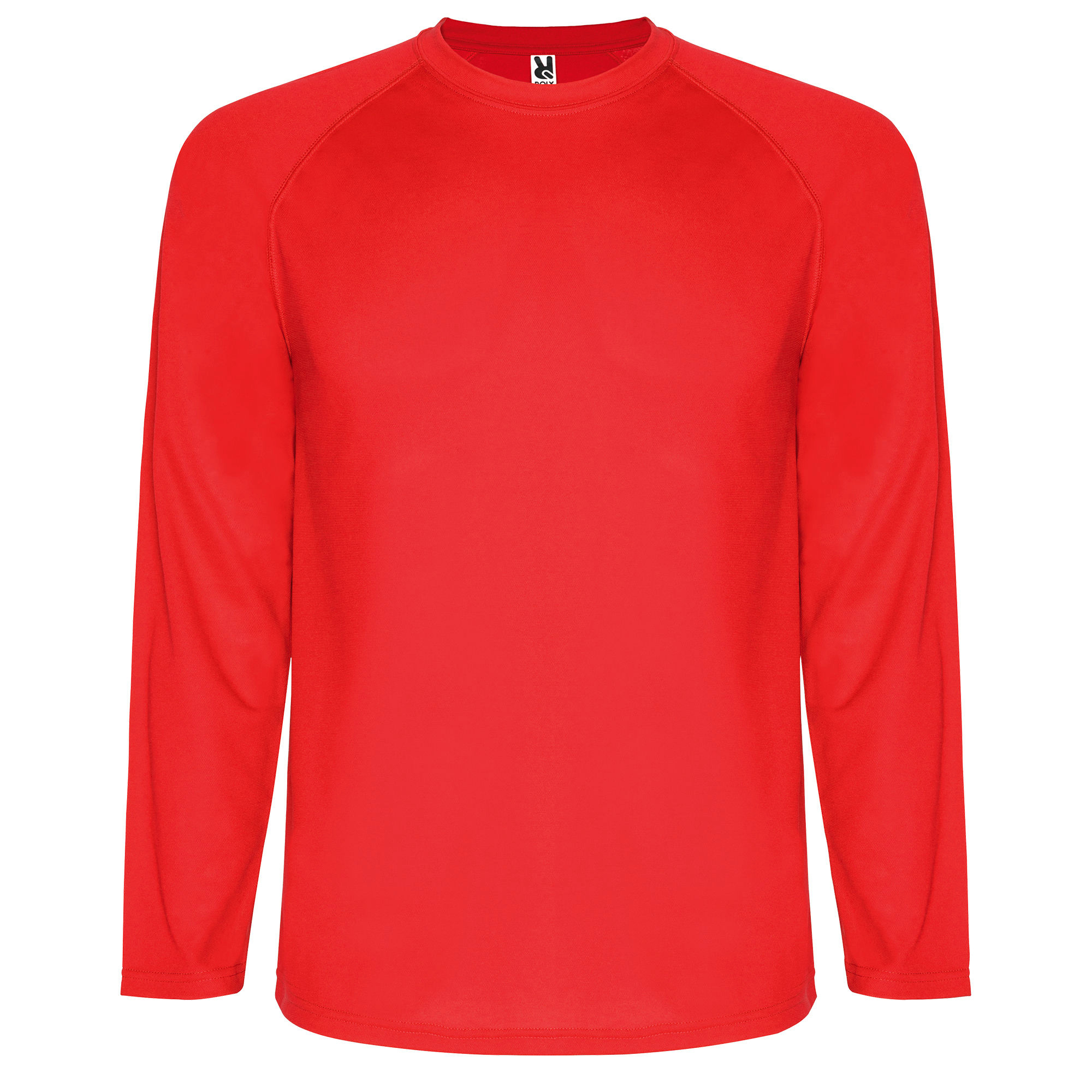 T-shirt technique respirant à manches ranglan. Roly Control Dry. Col rond ton sur ton et biais à l’encolure. Certifié UV.