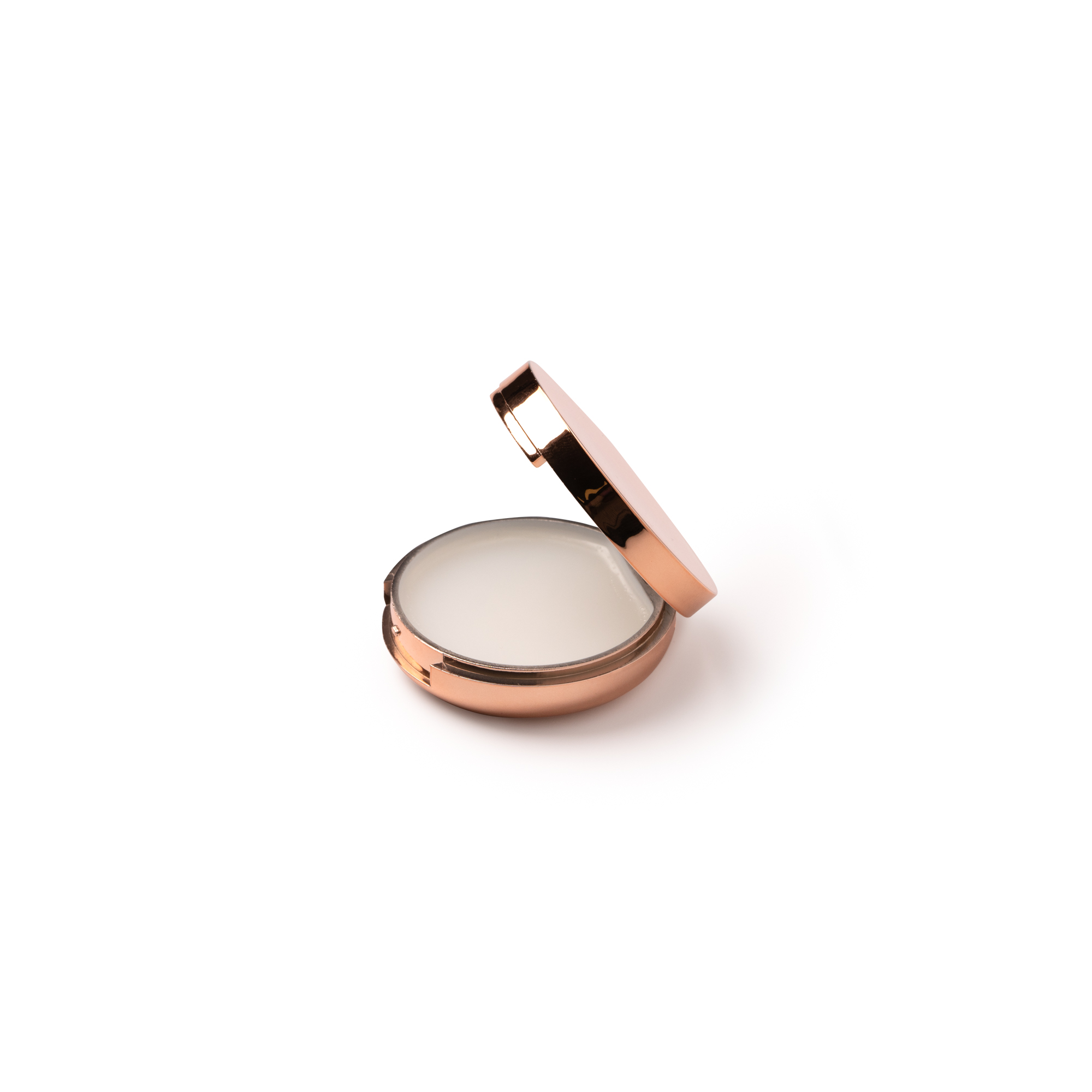 Baume à lèvres dans un étui chromé avec miroir intérieur. Protection SPF15.
