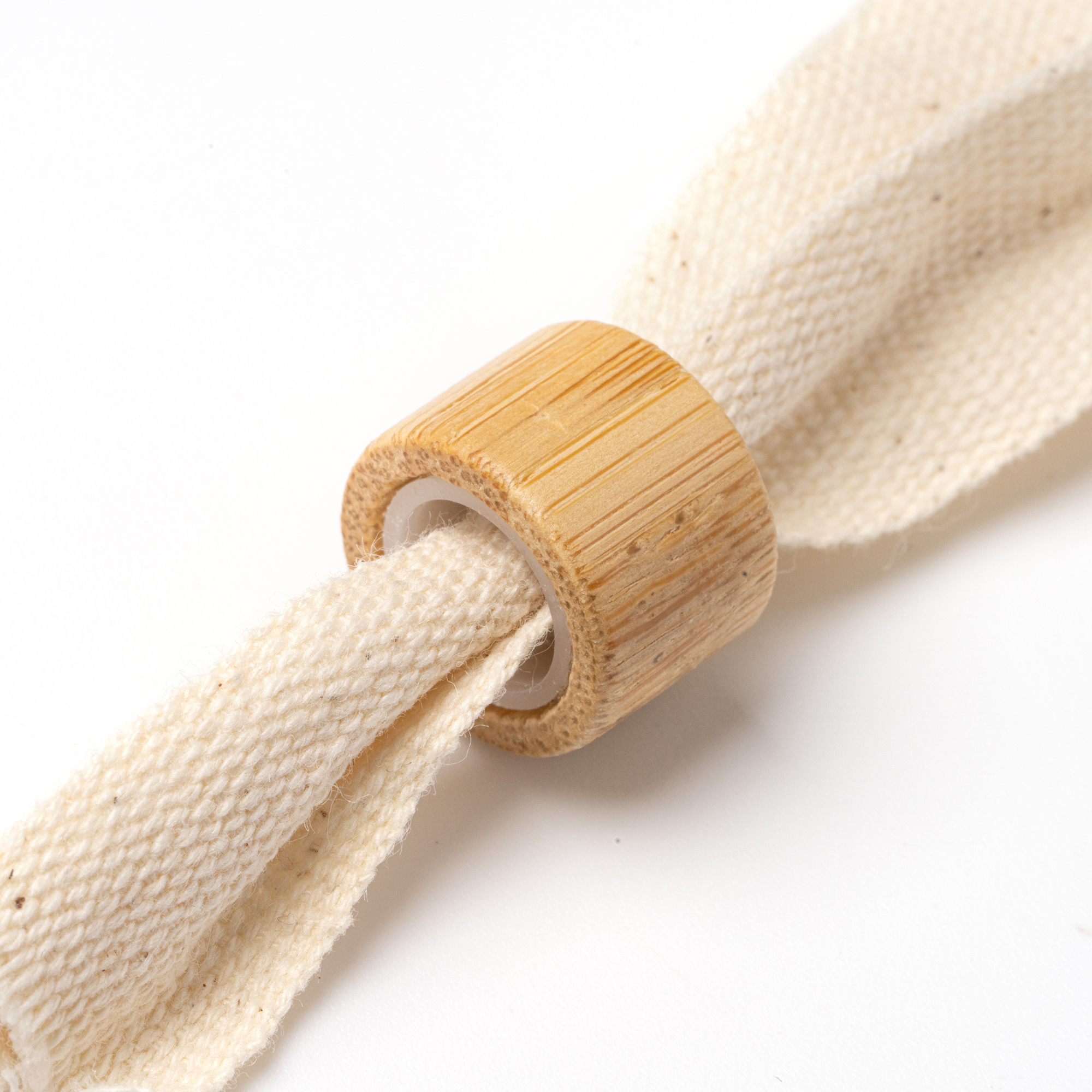 Bracelet en coton naturel avec fermeture de sécurité (non retournable) en bambou.