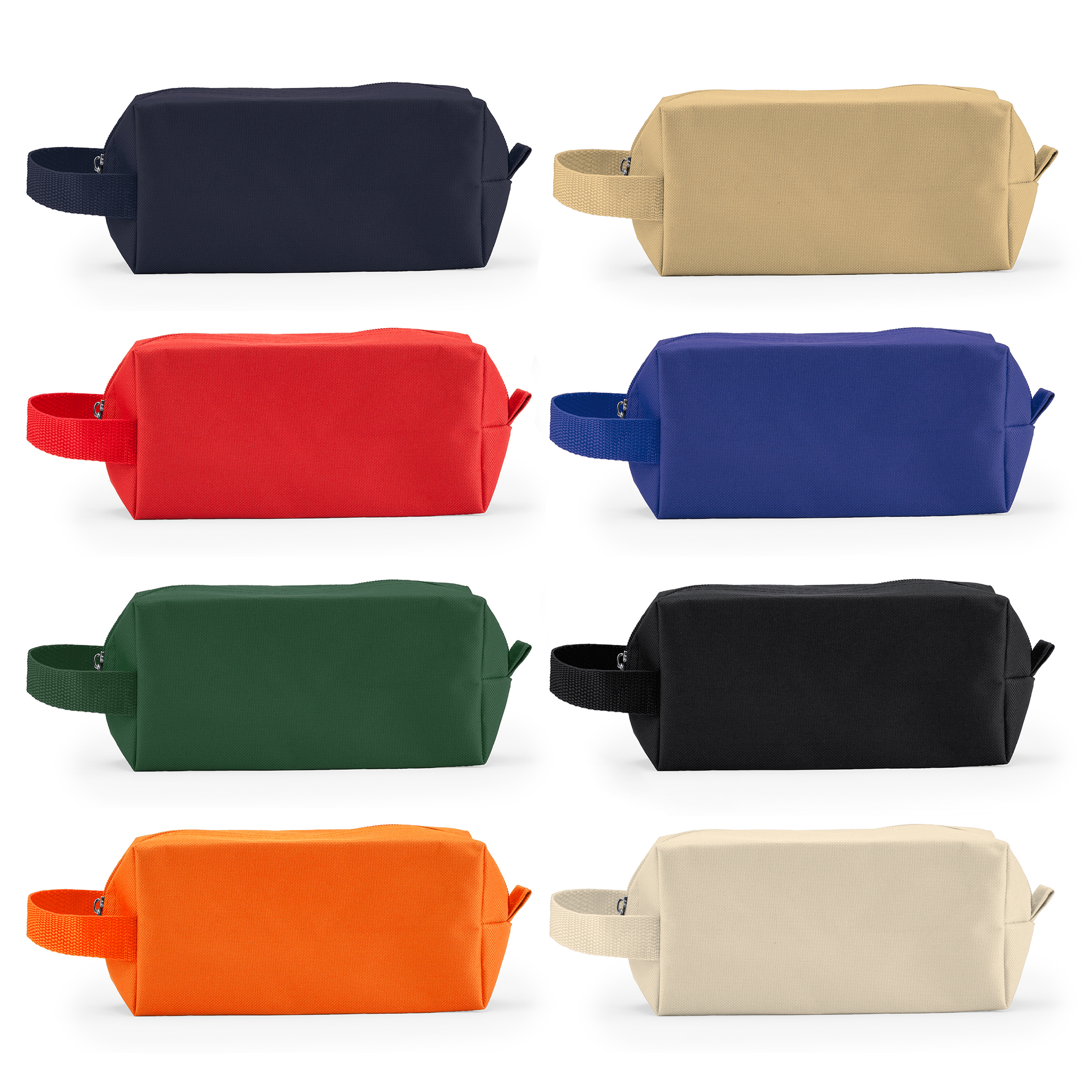 Nécessaire en polyester 600D avec zip et anse de transport.