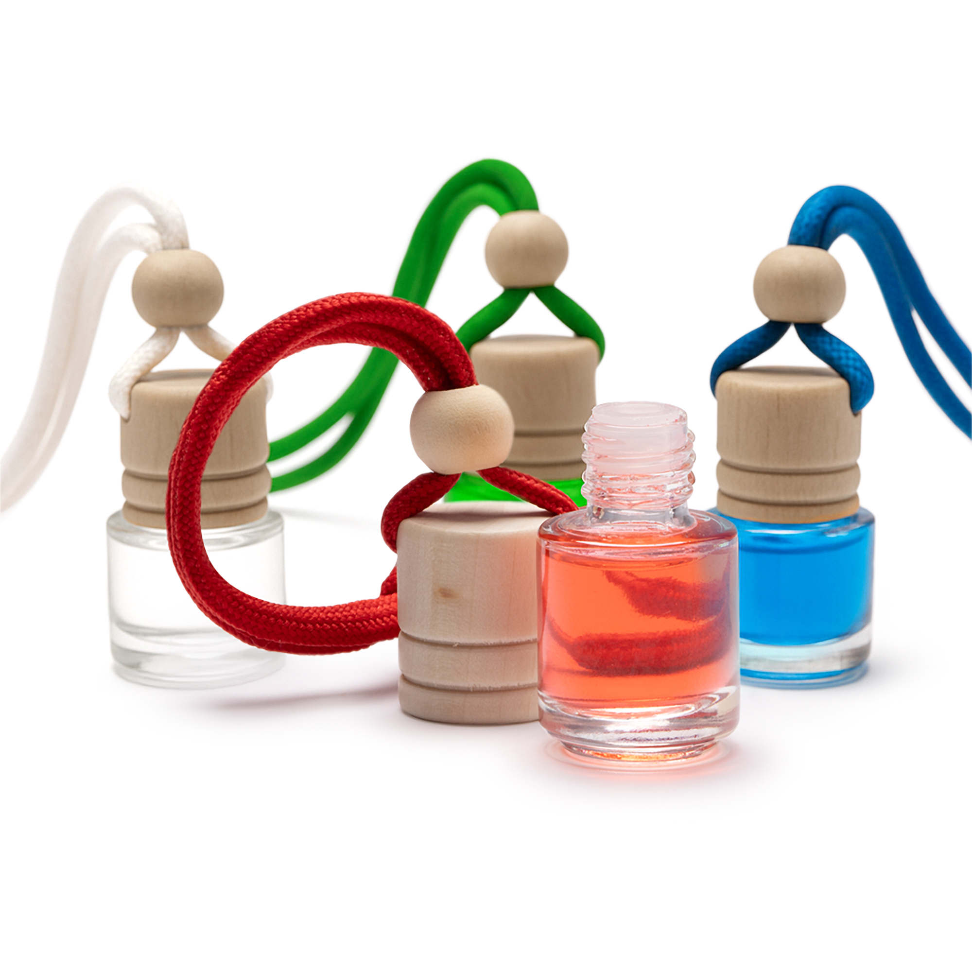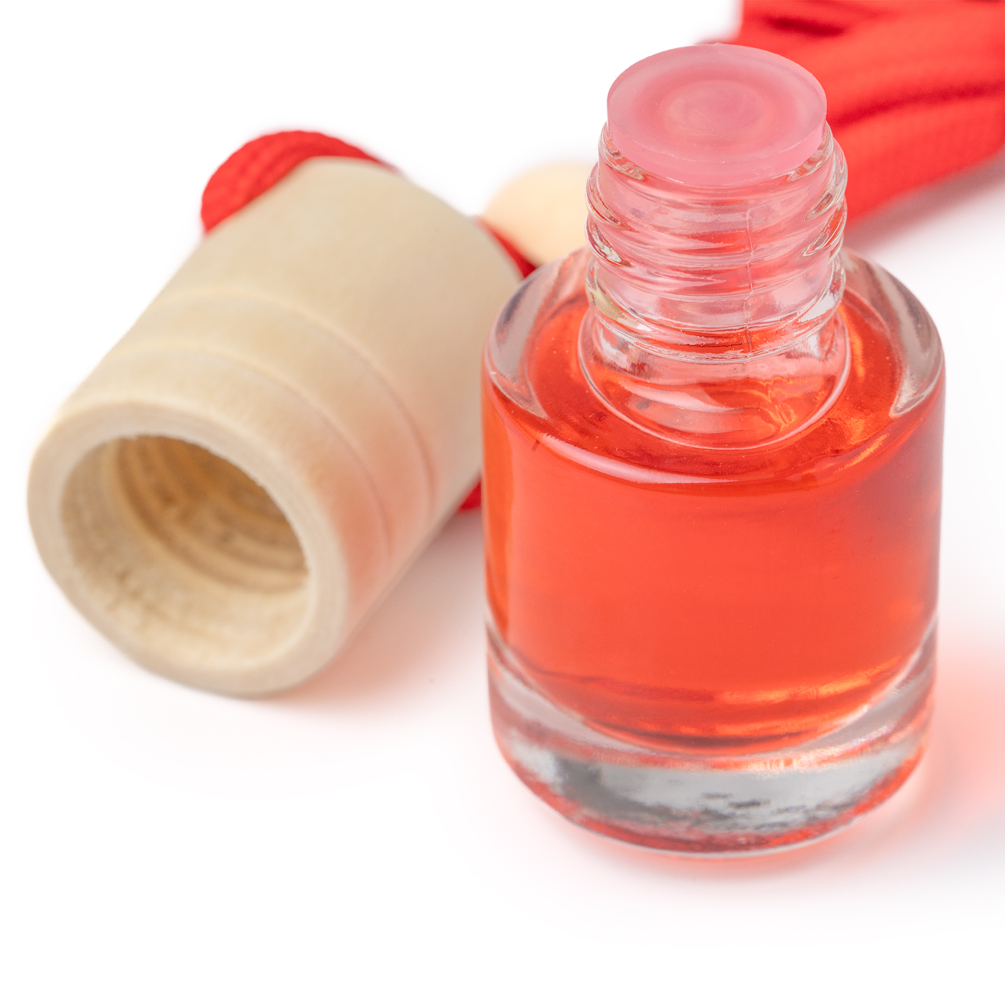 Désodorisant avec différents parfums dans un récipient en verre avec capuchon en bois et cordon réglable assorti. Capacité 5 ml. Présentation dans une boîte transparente.