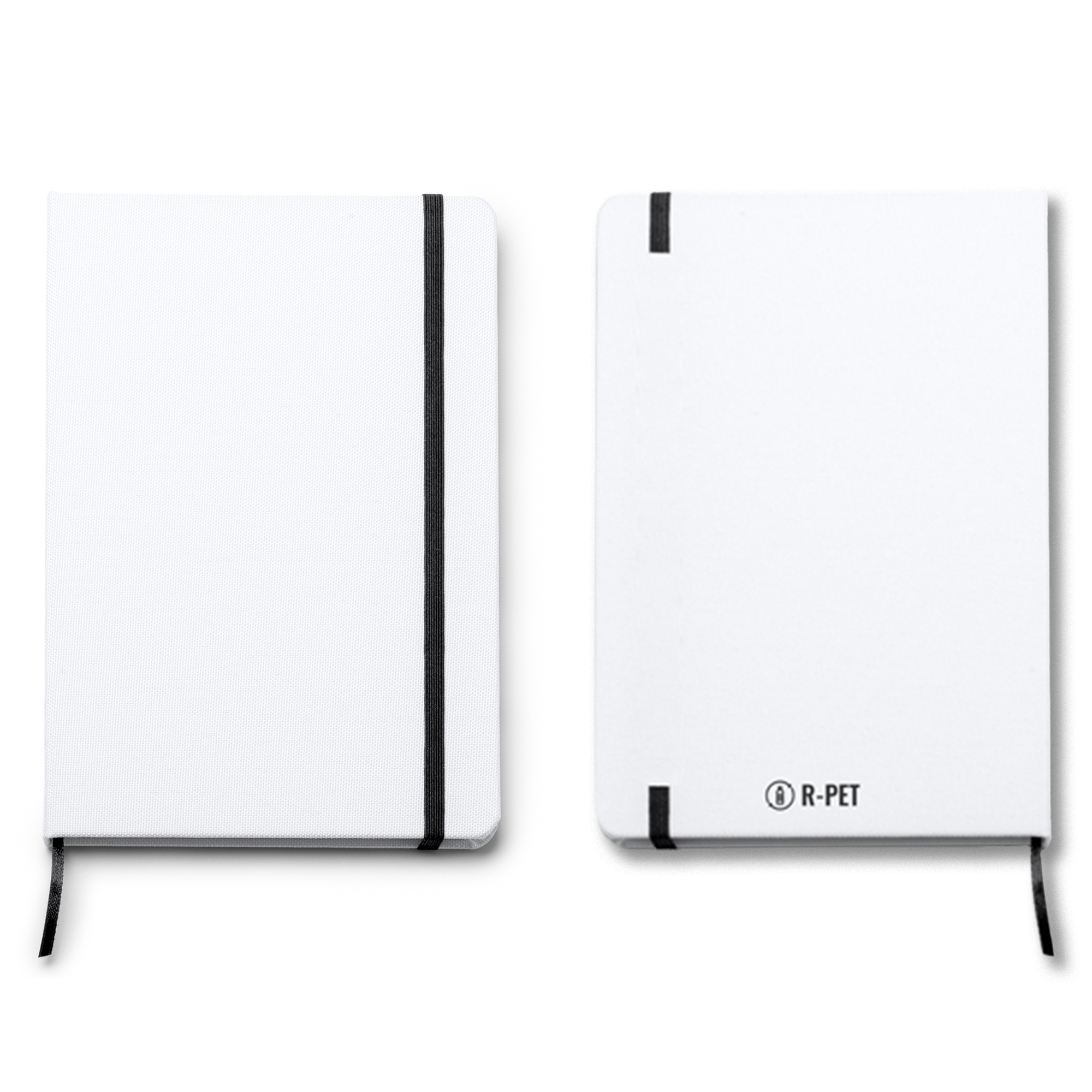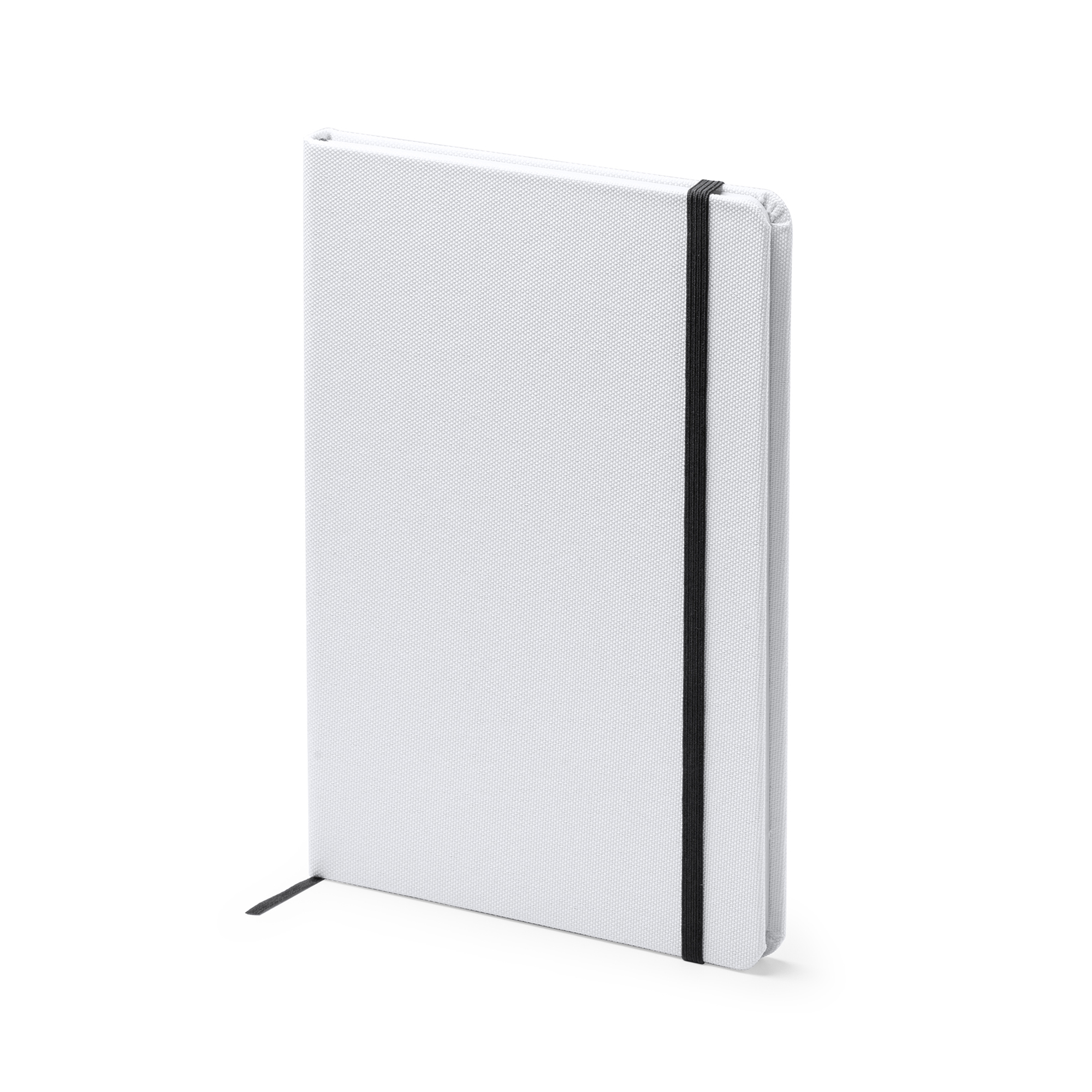 Bloc-notes de format A5 idéal pour la sublimation sur couverture rigide. Comprend un marqueur de page et un élastique de fermeture assorti. Contient 100 feuilles de papier ordinaire.