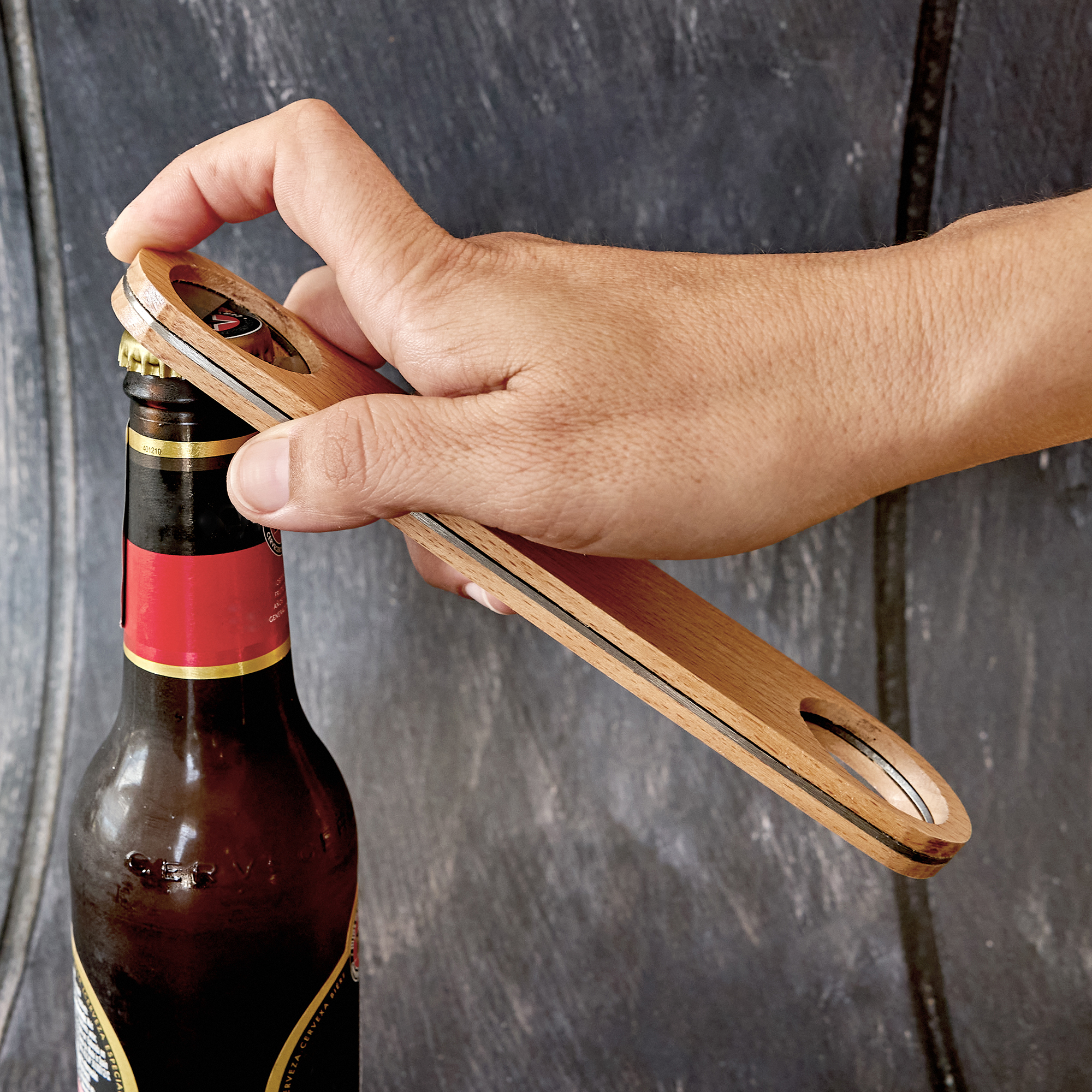Ouvre-bouteille allongé de ligne naturel, avec un trou à chaque extrémité: l’un avec une fonction d’ouverture et l’autre comme un crochet. Fabriqué en bois naturel avec intérieur en acier inoxydable.