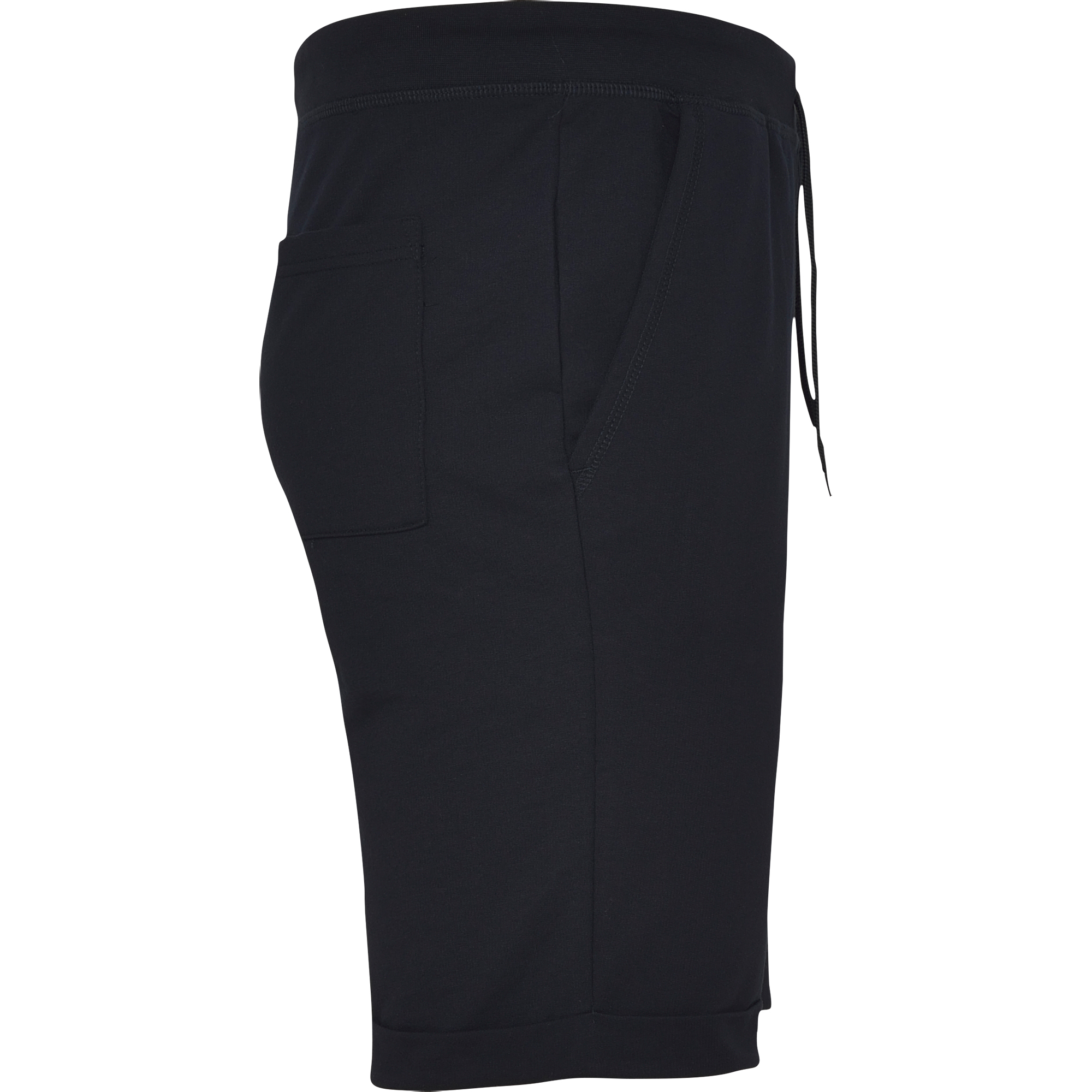 Short de sport basique en tissu polaire non brossé. Ceinture élastique et cordon de serrage réglable avec œillets en métal. Poches latérales et arrière. Ourlet décontracté.