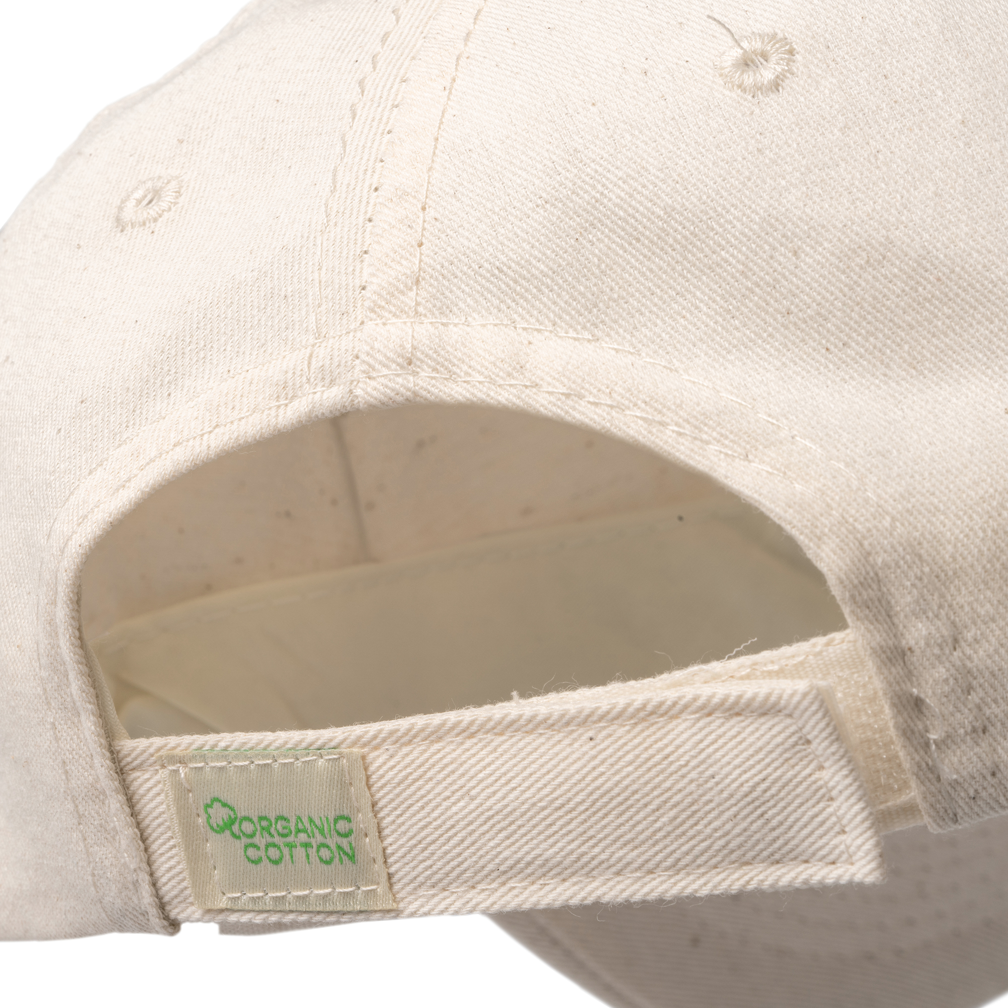 Casquette 5 pans 100 % coton organique. Fermeture velcro réglable et œillets d’aération. Étiquette amovible.