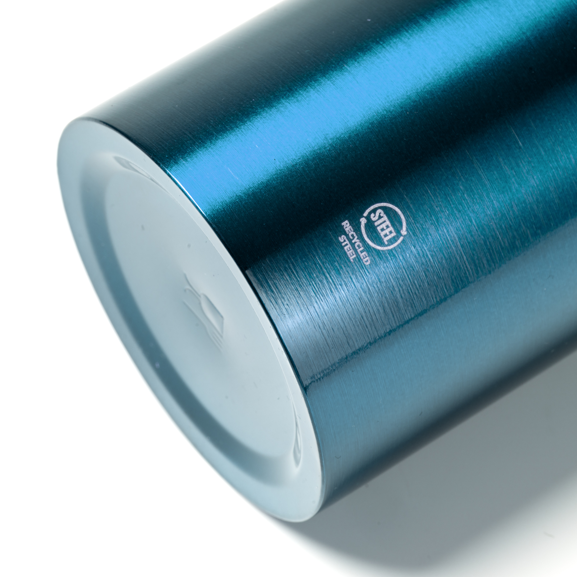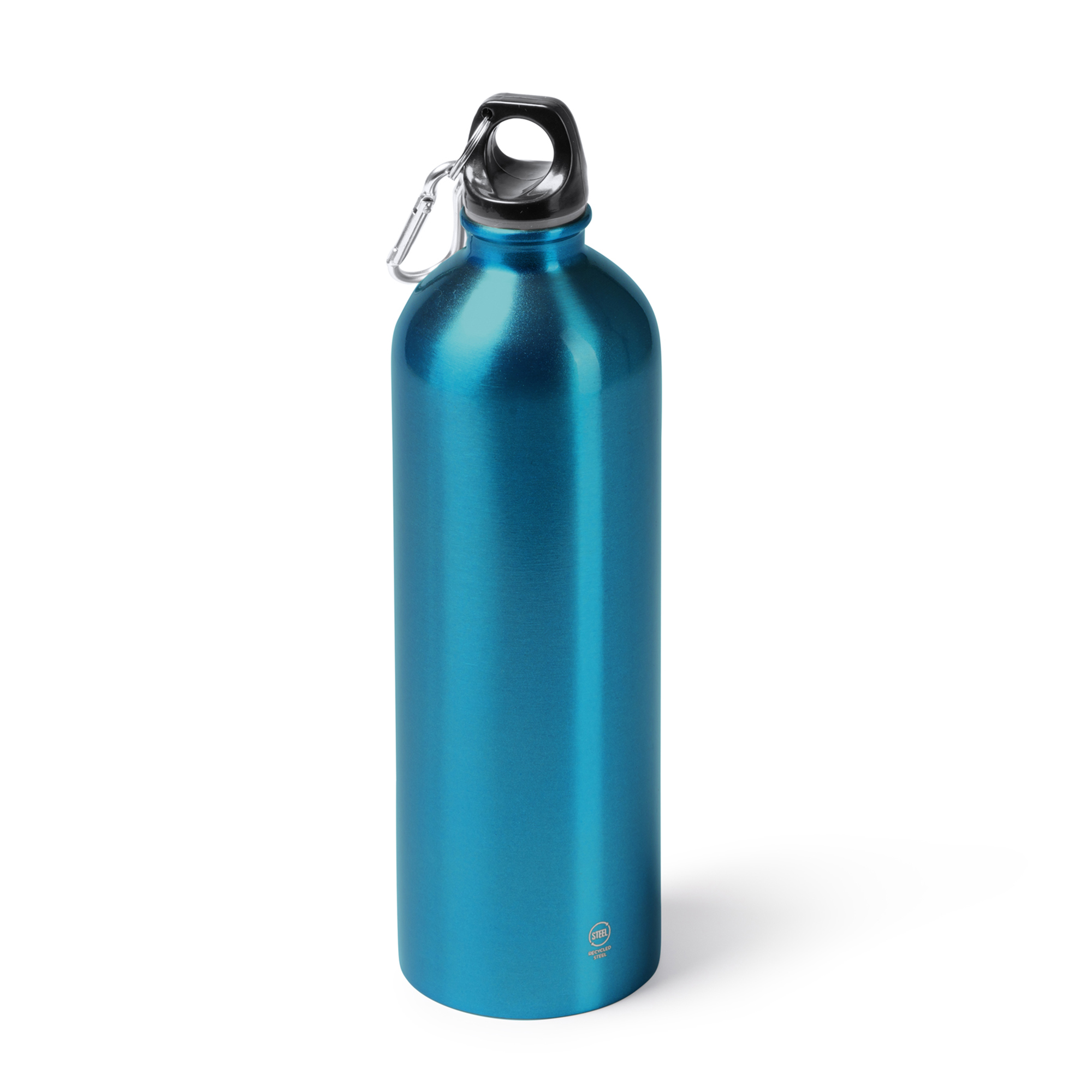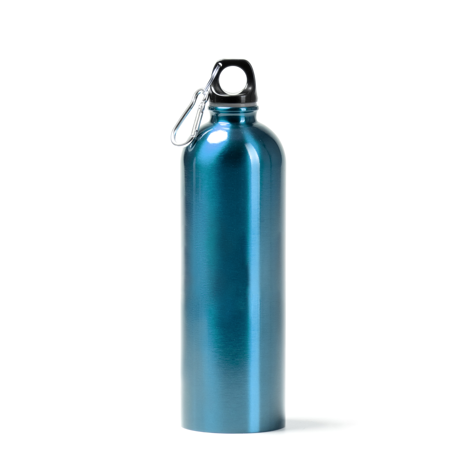 Bouteille en acier inoxydable 304 recyclé. Finition métallisée avec mousqueton. Capacité : 750 ml. Présentation en boîte éco-conception.