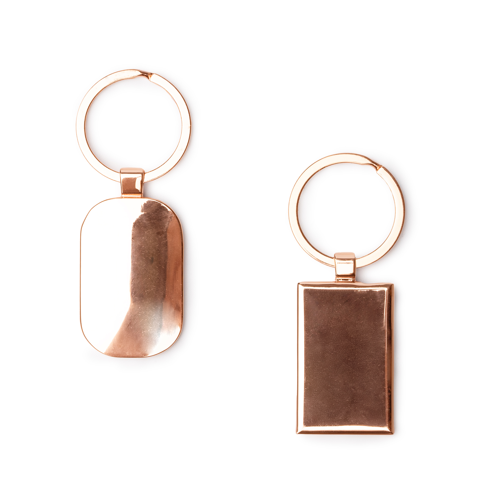 Porte-clés en métal avec revêtement en cuivre et intérieur noir. Il comporte une large surface pour le marquage.