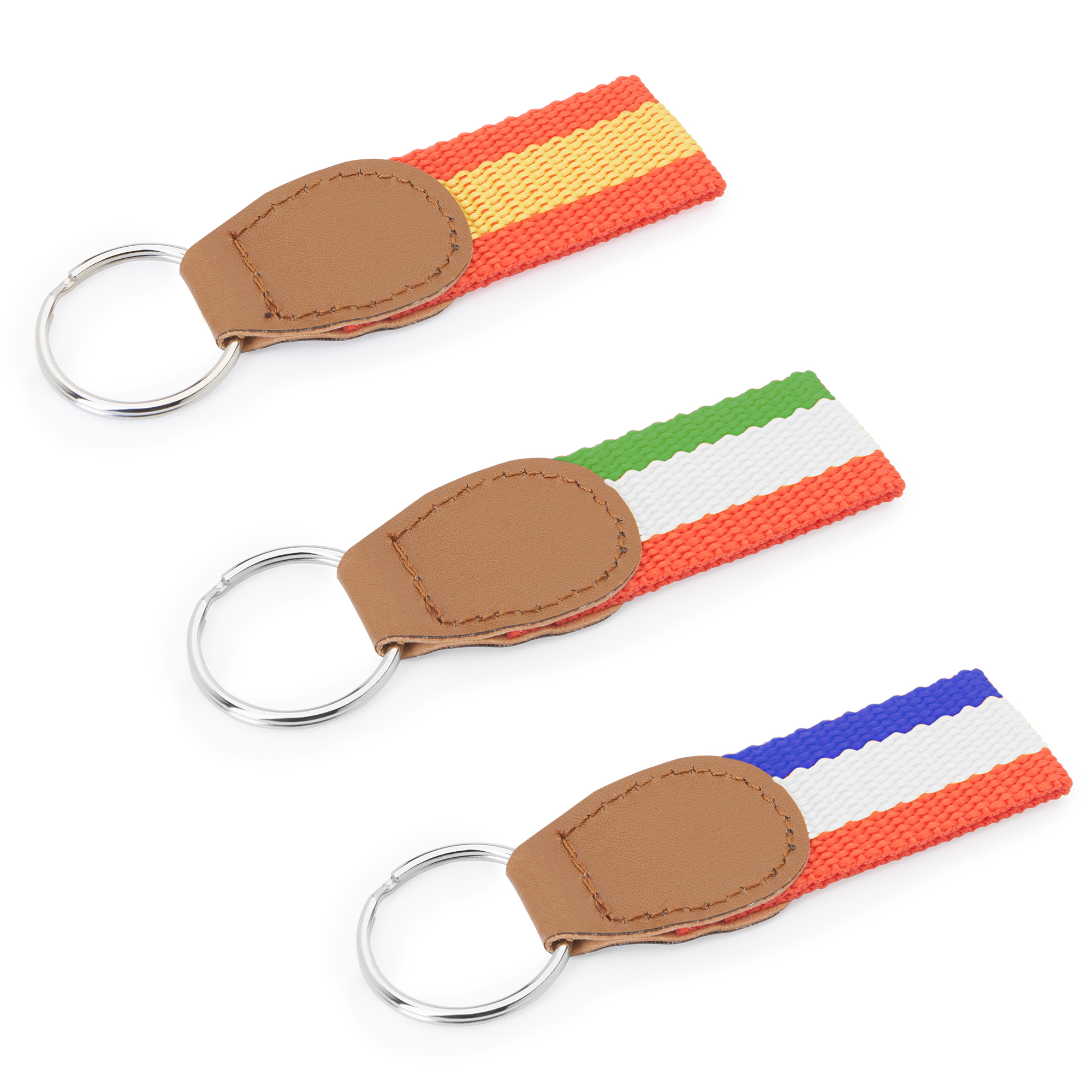 Porte-clés en polyester avec motif drapeau et renfort PU.