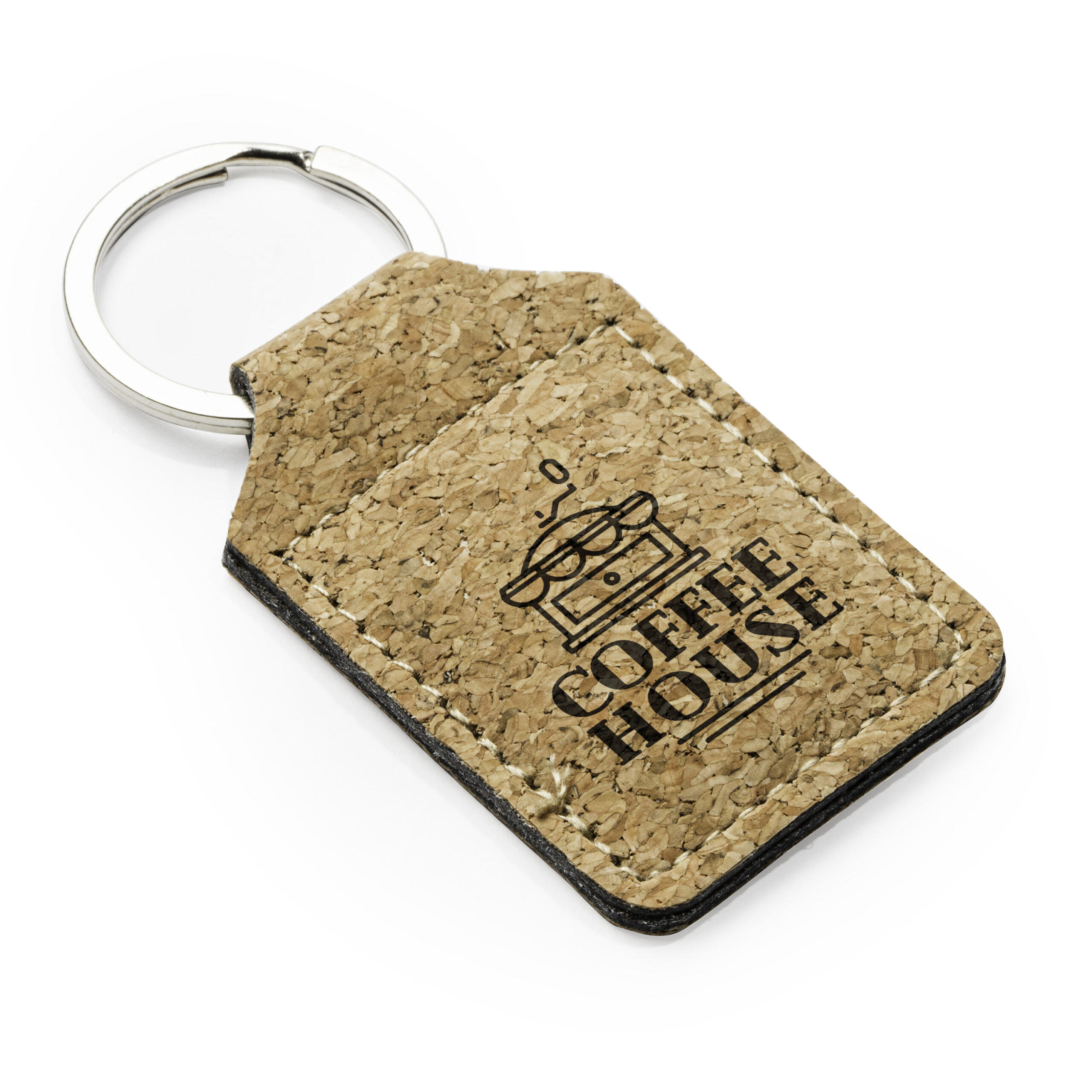 Porte-clés classique en liège naturel avec anneau en métal.