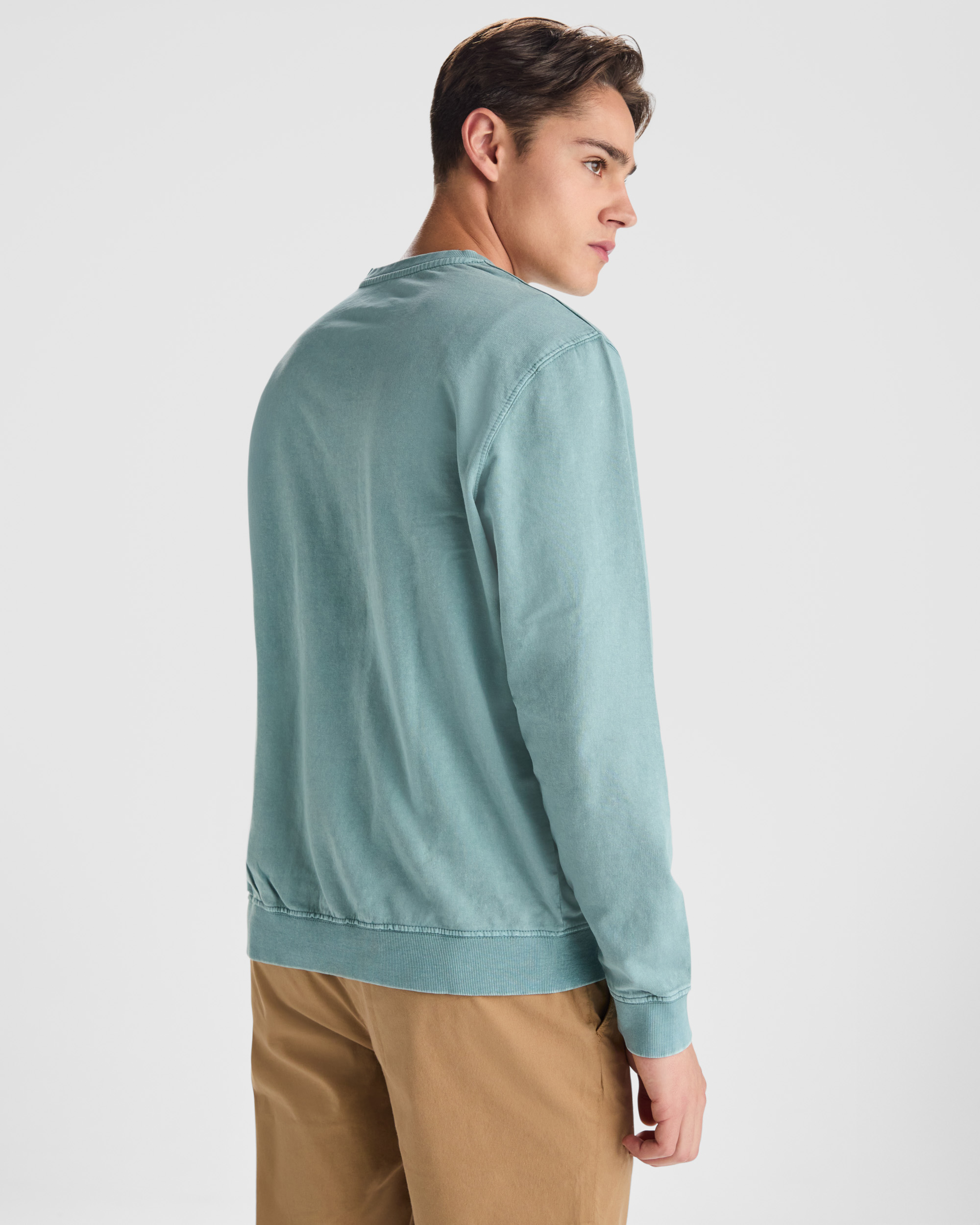 Sweatshirt unisexe à col rond en coton lavé non gratté. Col, poignets et taille côtelés 2×1 avec élasthanne. Coutures bordées de tissu assorti.