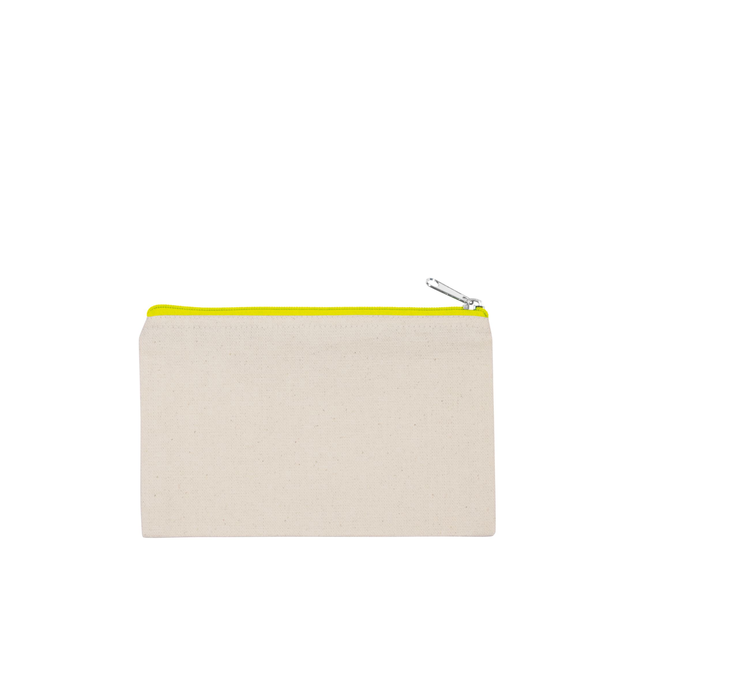 Pochette en coton canvas, fermeture zippée de couleur contrastée. Petit modèle.