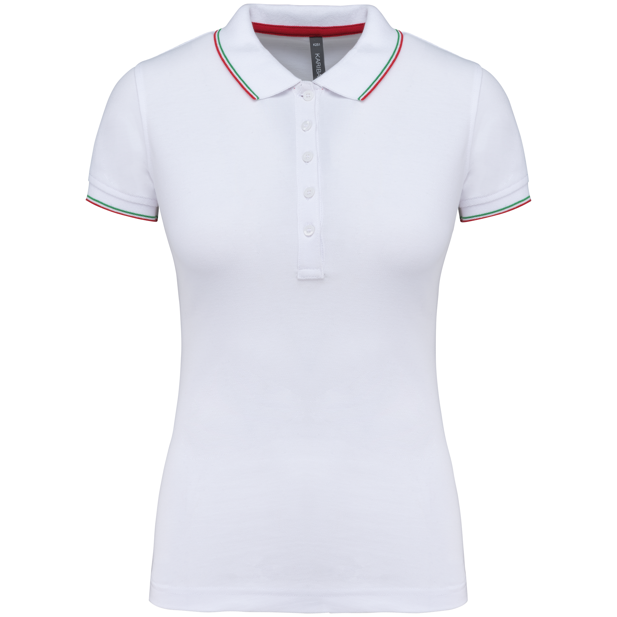 100% coton piqué. Patte de boutonnage col 5 boutons. Bande de propreté contrastée encolure et fentes côtés. Finitions bord-côte avec liserés contrastés col et bas de manches. Double aiguille bas de vêtement.
