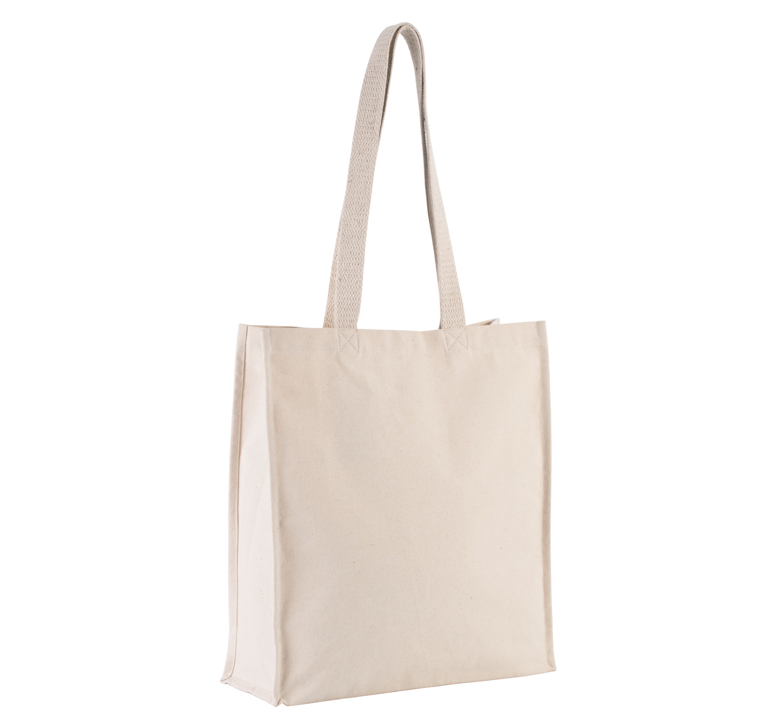 Sac cabas en coton canvas, à fond large avec soufflet, longues anses de 70 cm en coton couleur écru.