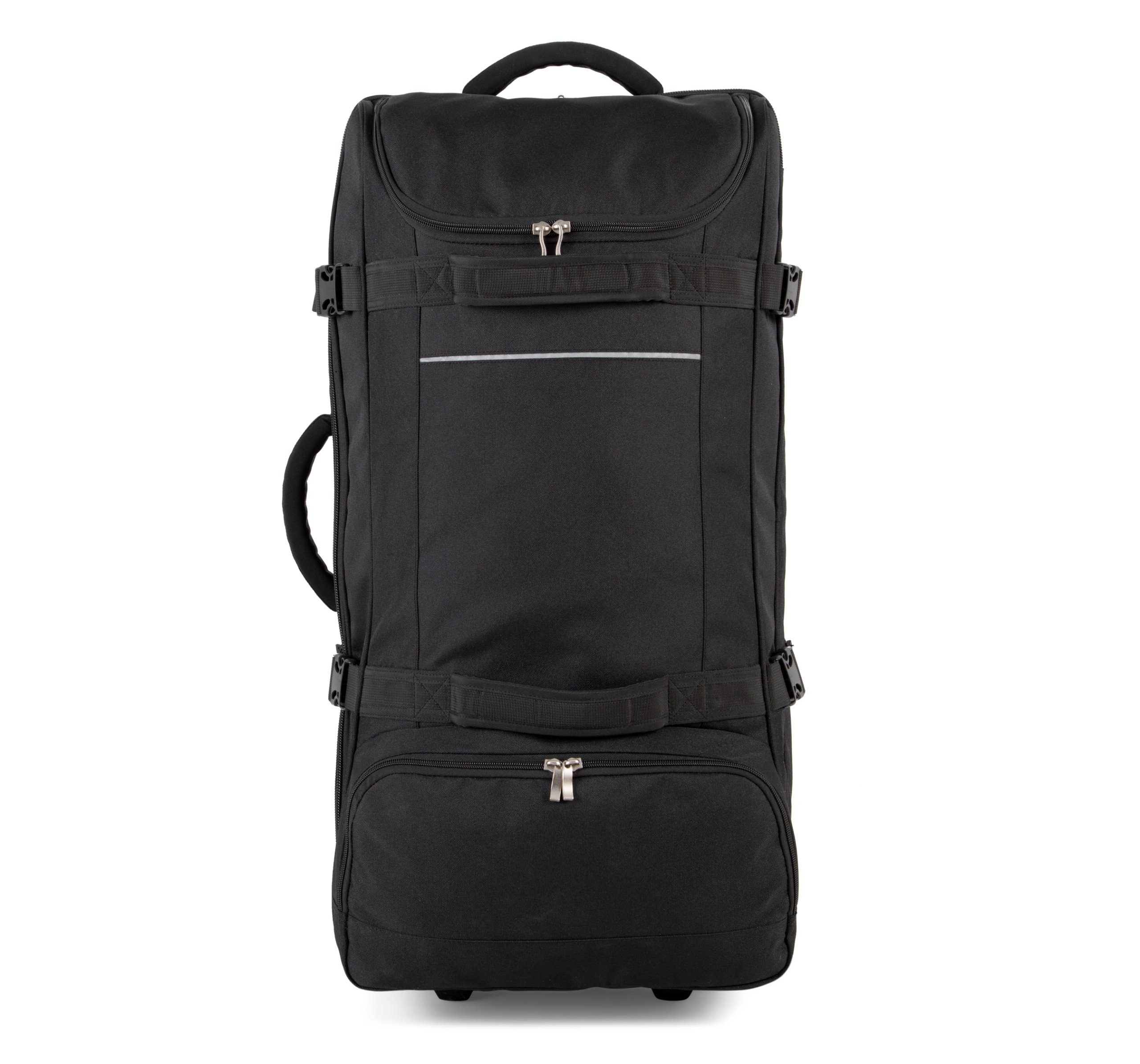 100% polyester. Ouverture en portefeuille. Ouverture supérieure avec grand compartiment facilitant la personnalisation. Sangles de compression latérales. Barres de renfort et protection au dos. Poignées latérales supérieure pour une grande maniabilité, Même à pleine charge.